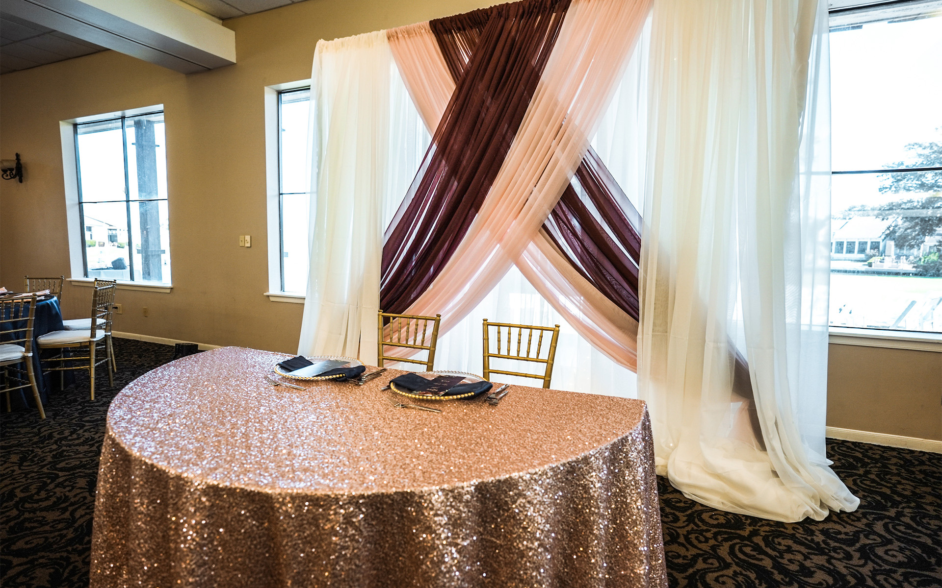 We have a beautiful gazebo overlooking Lake Conroe that may be used to host your intimate wedding ceremony. Our Lakeside room can hold up to 250 guests and has a covered deck for extra seating.