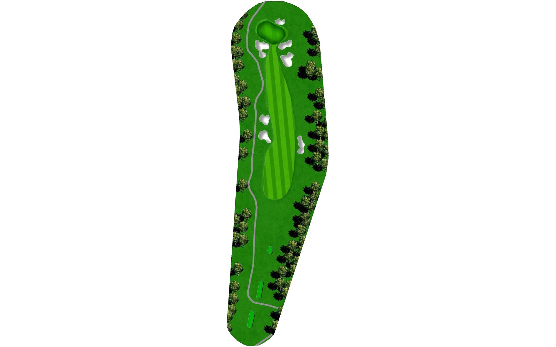 Pay attention to the wind direction on the first par 3 of the day as being short of the green will end up in one of the bunkers guarding the putting surface. Depending on the pin location, be mindful of a ridge in the middle of the green that will feed the ball right or left.