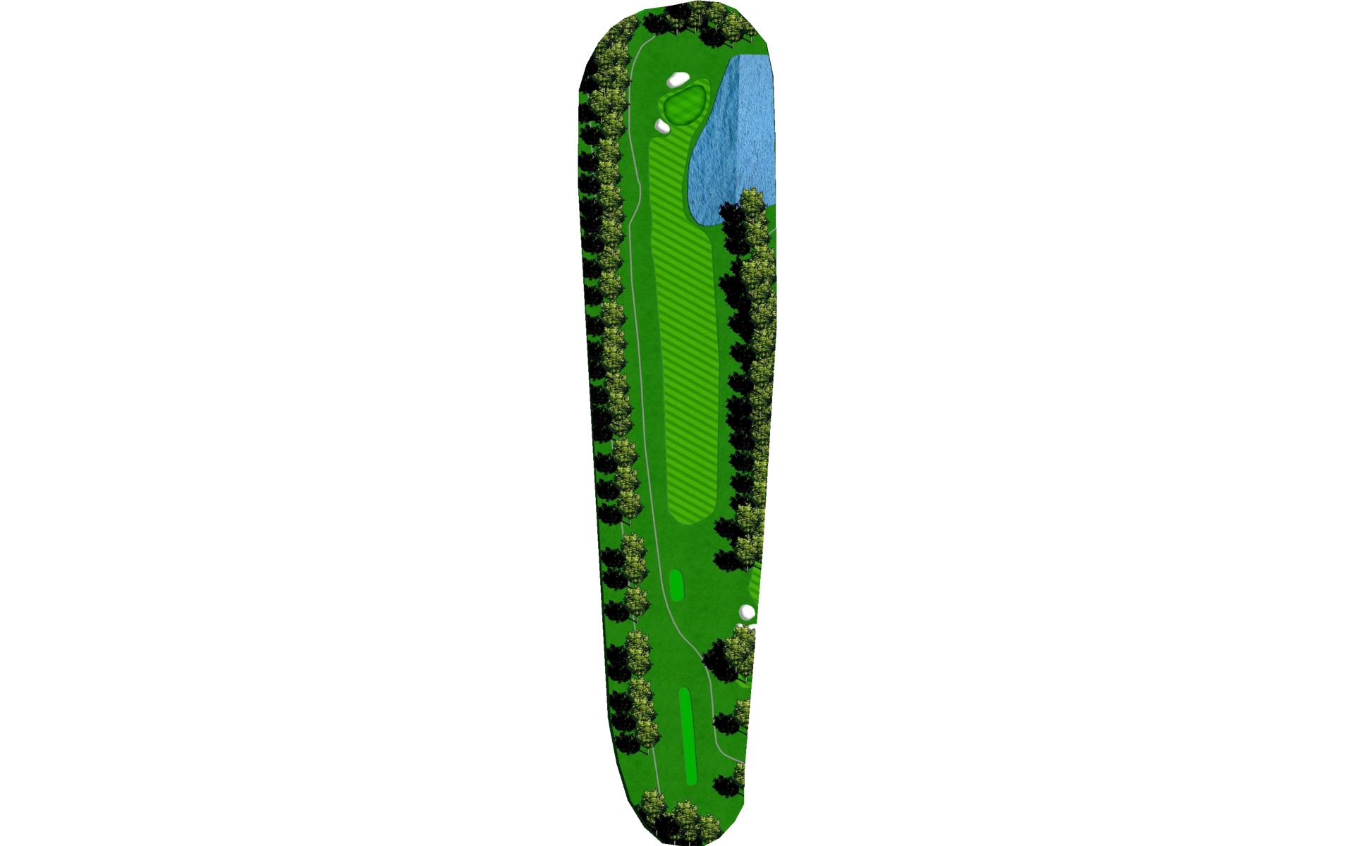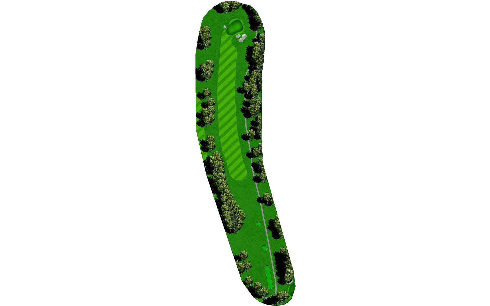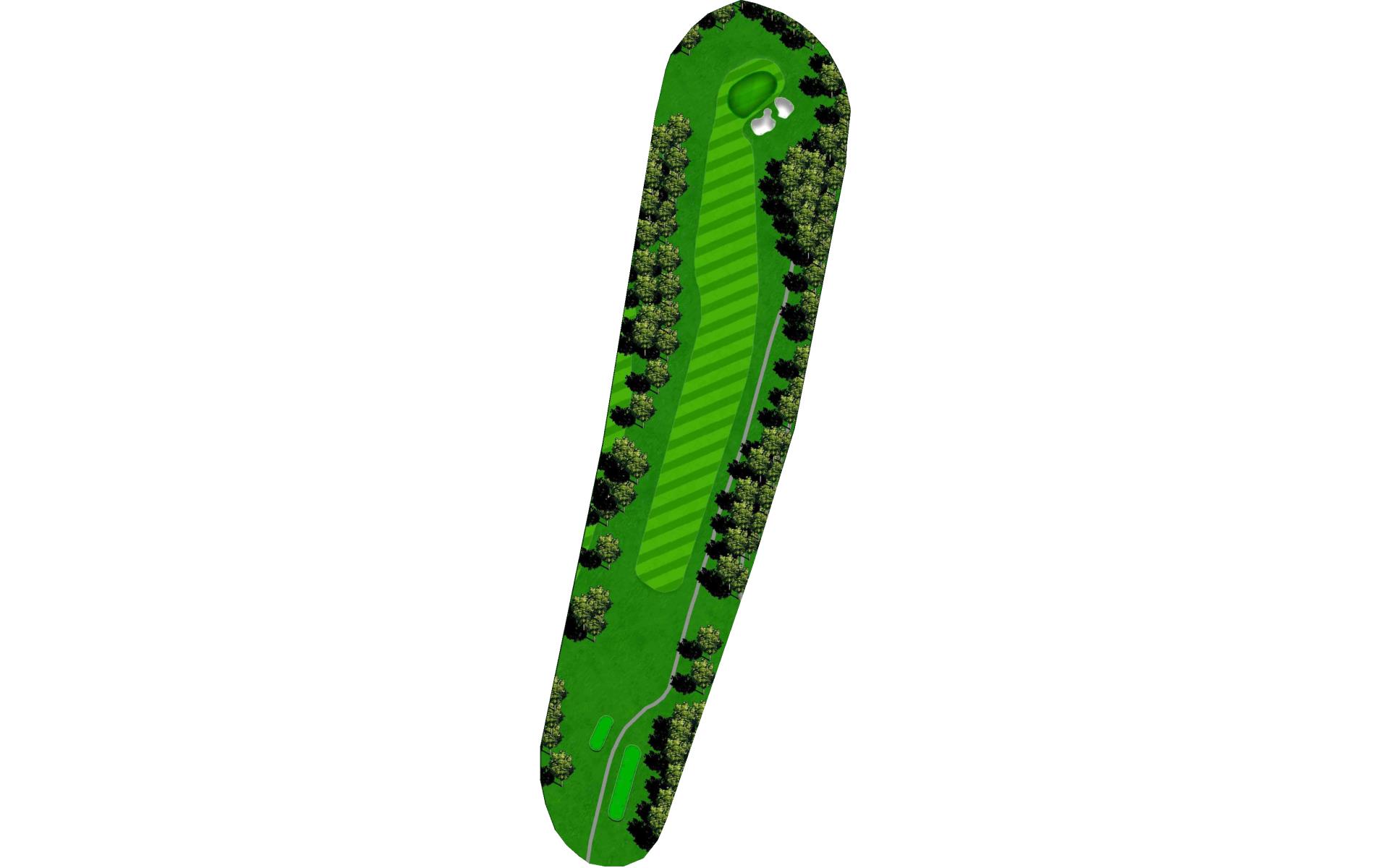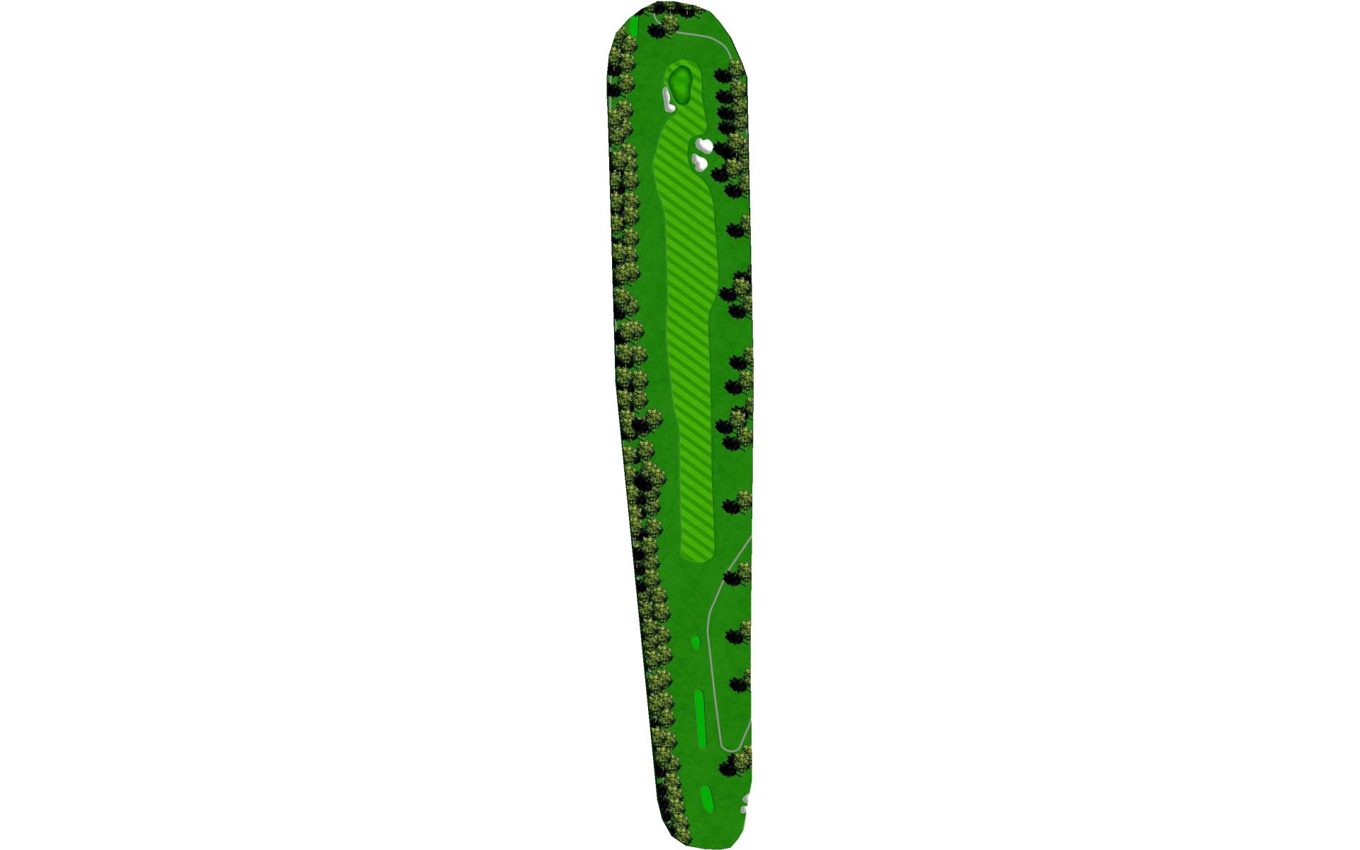 Another par 4 that demands that you find the fairway. Favor the left half of the fairway, knowing that you will still have a challenging short iron to a well-protected green.