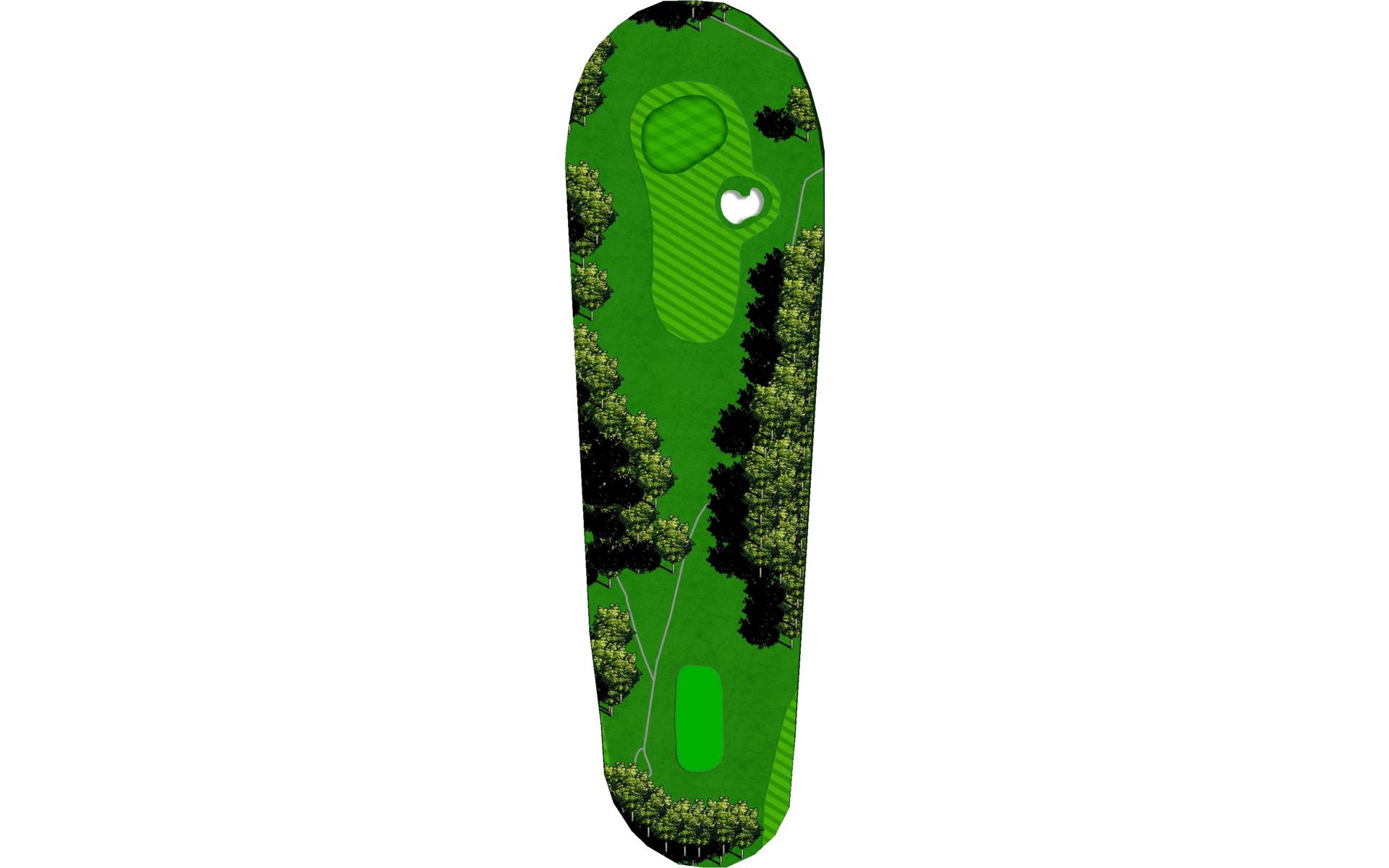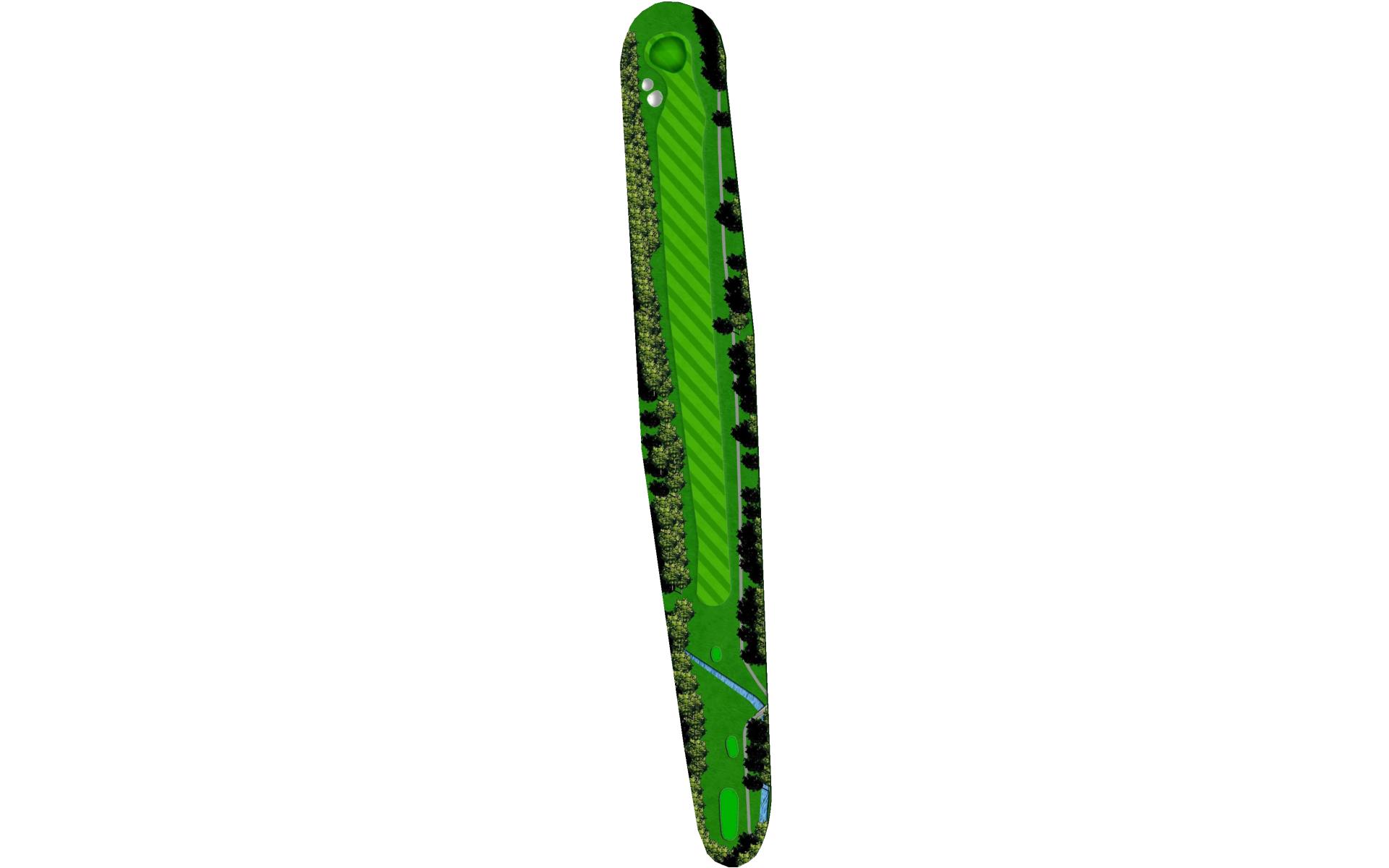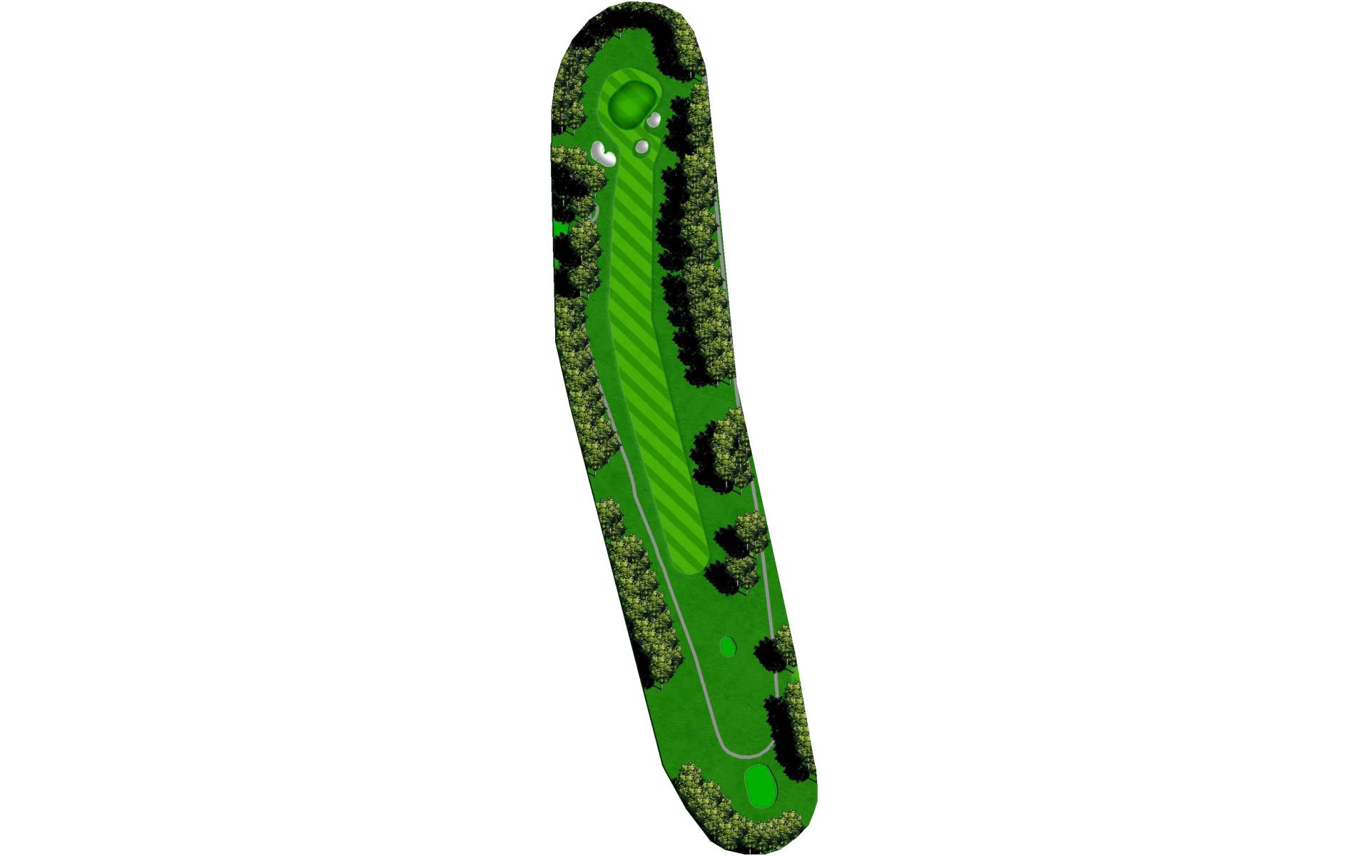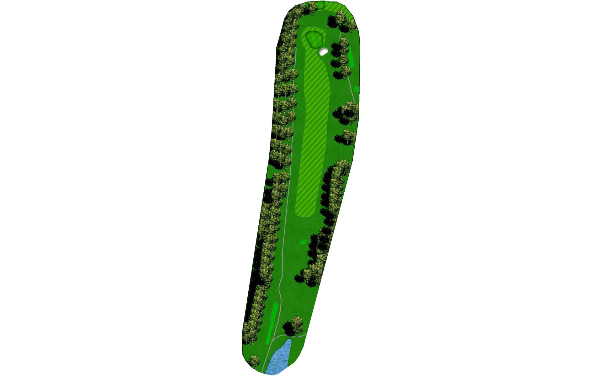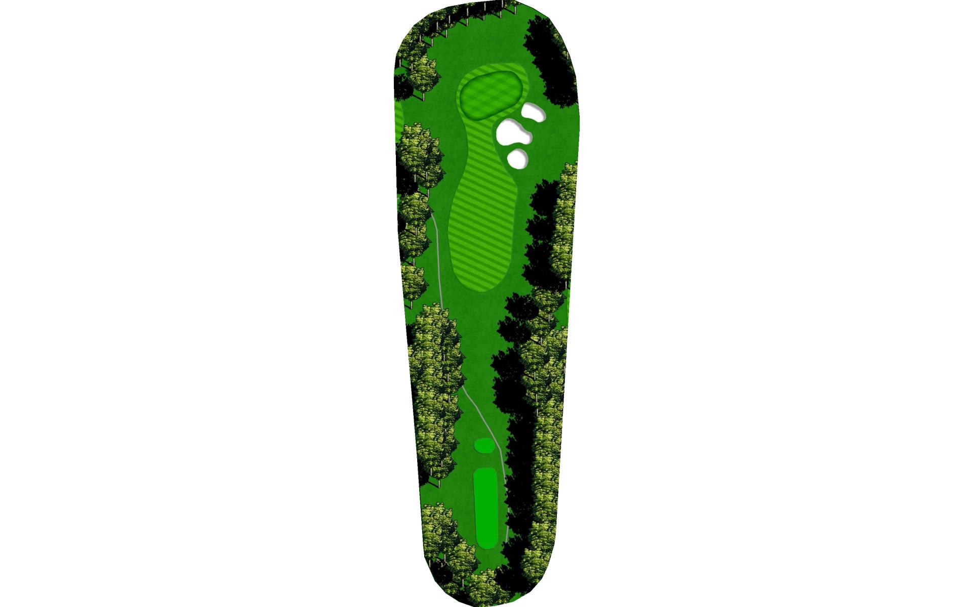 Another par 4 that demands that you find the fairway. Favor the left half of the fairway, knowing that you will still have a challenging short iron to a well-protected green.