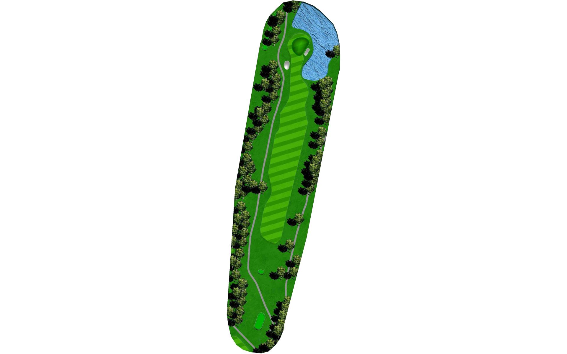 Although uphill, this is the most reachable par 5 on the course, as long as you find the fairway. On the green, be sure to factor in the effect of the lake on the break.