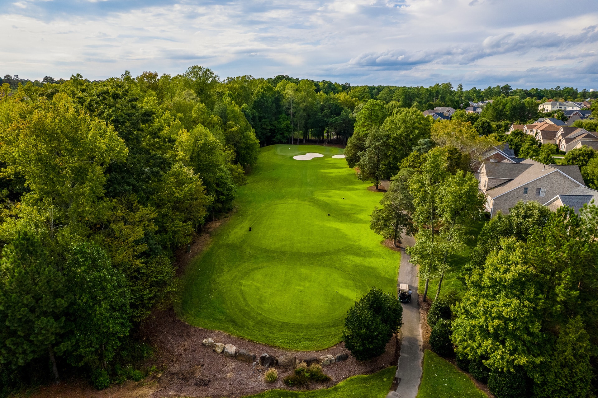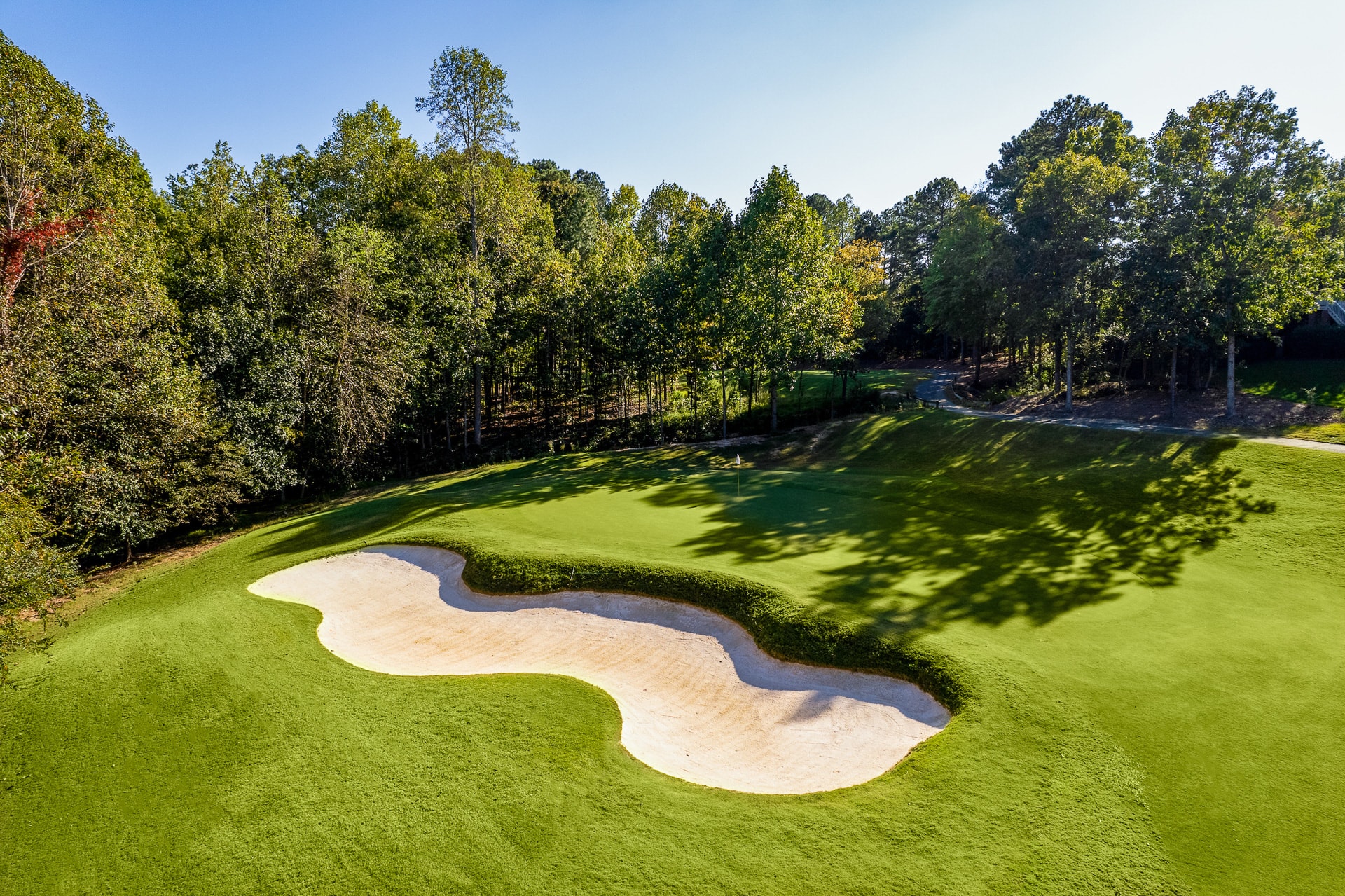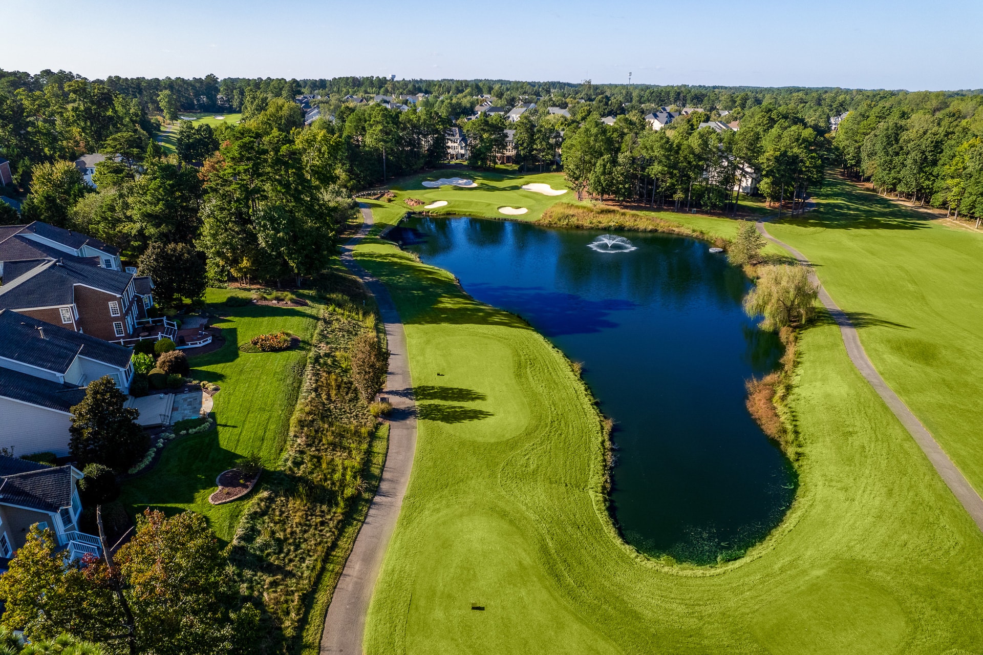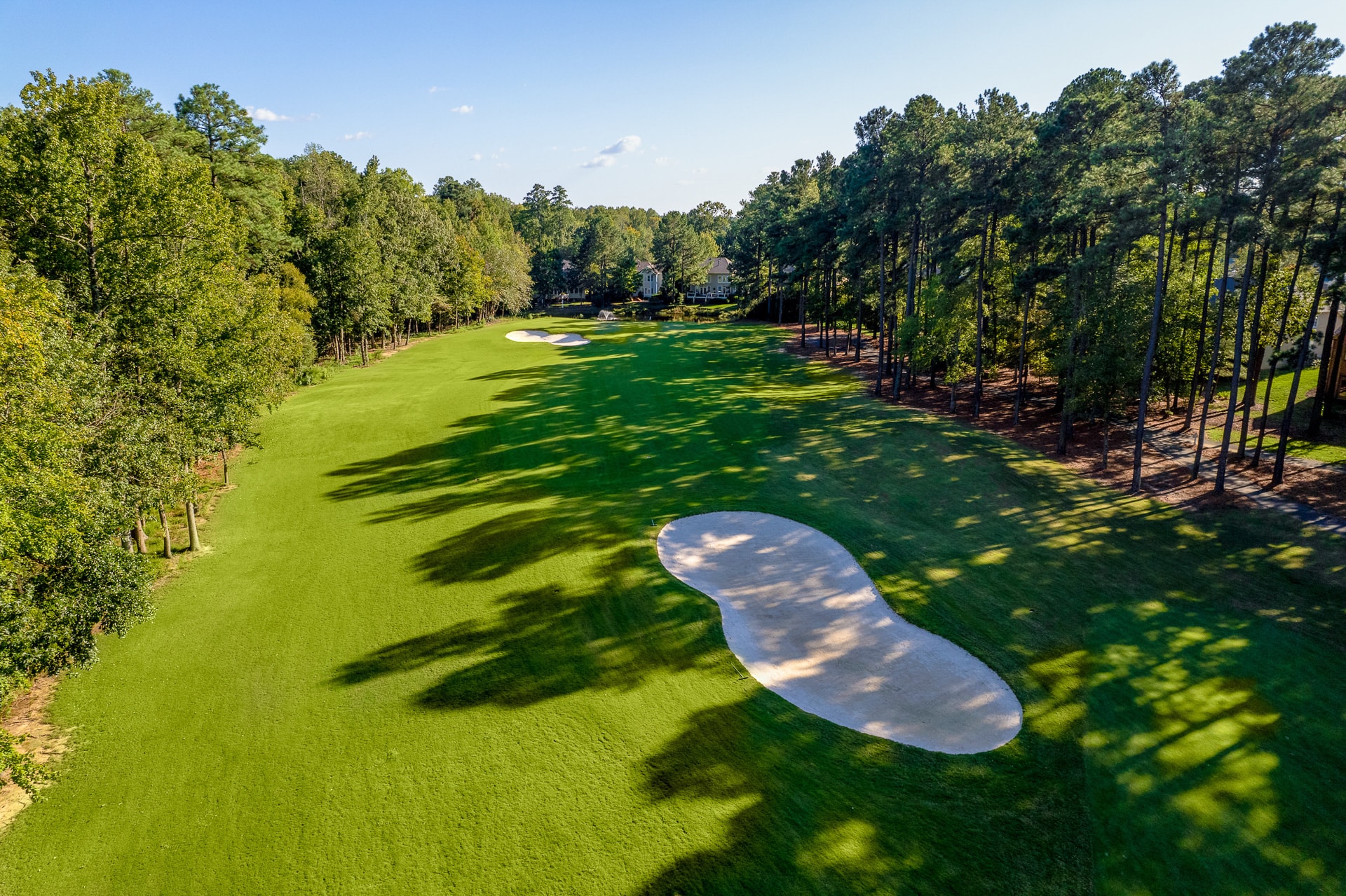 This signature par four is a perfect way to end your round. A well-placed drive will tempt players to test their skills in negotiating this intimidating green setting. Surrounded by water on three sides and bordered by the Carolina ledgestone retaining wall, players may elect to play safe to the left.