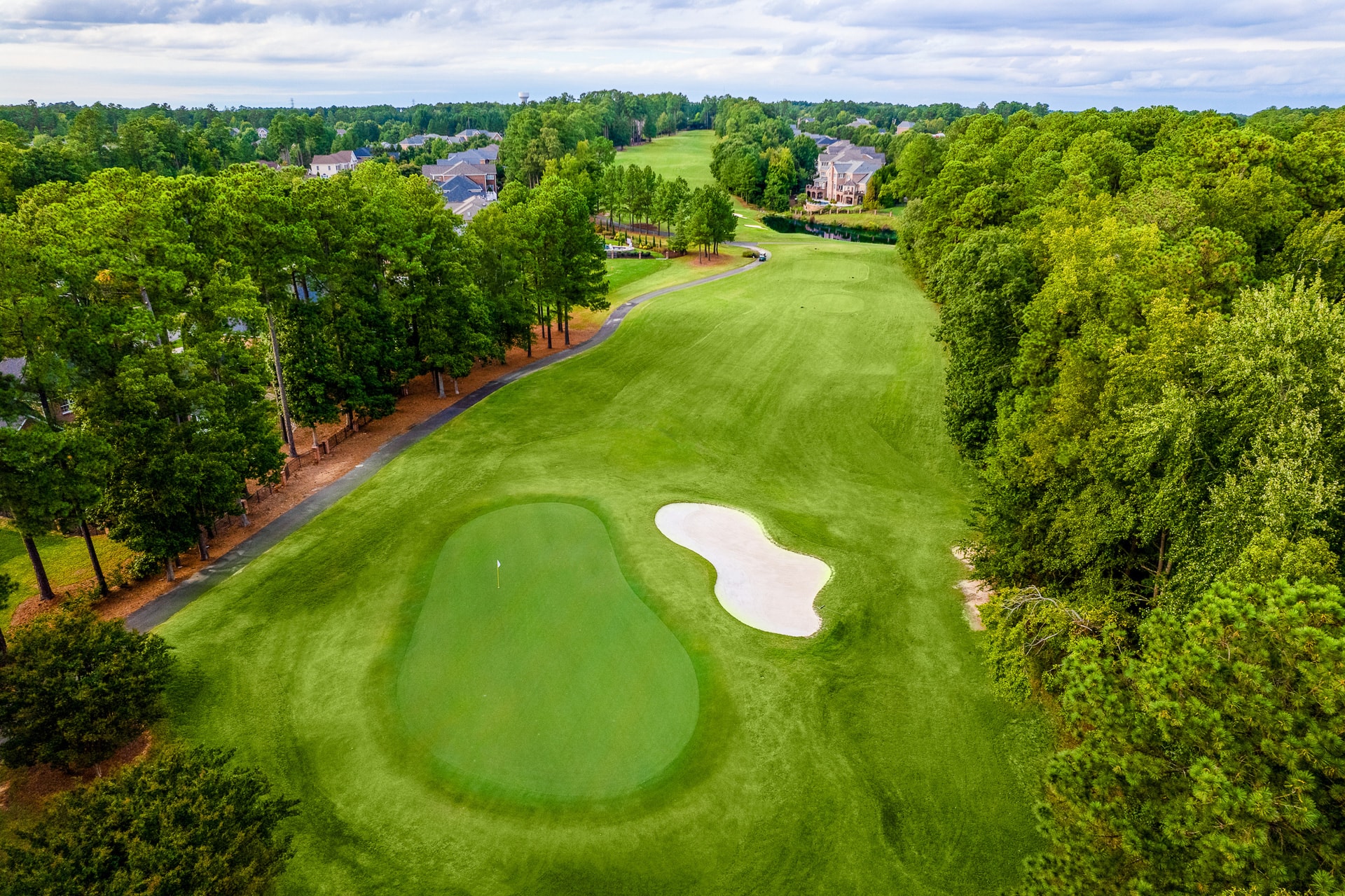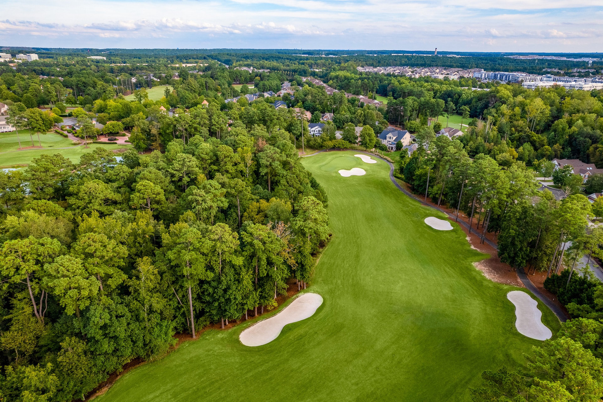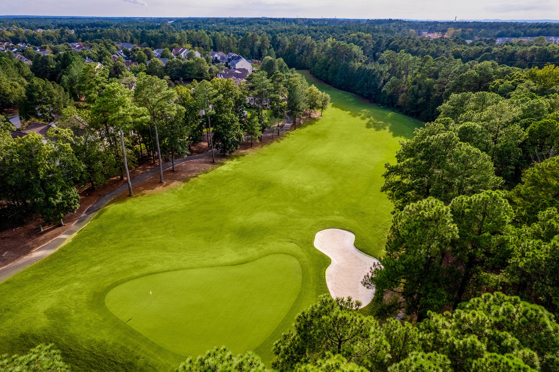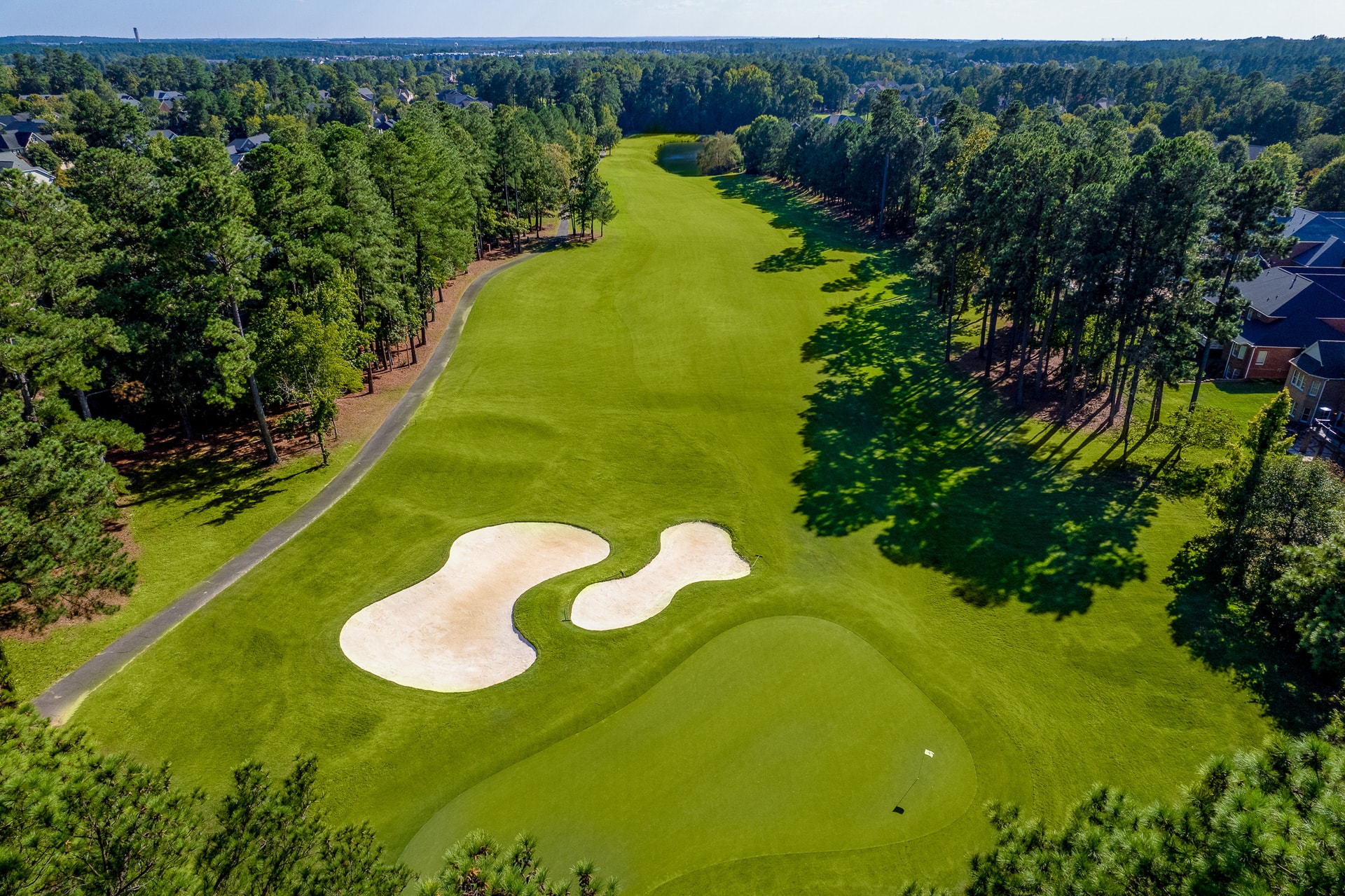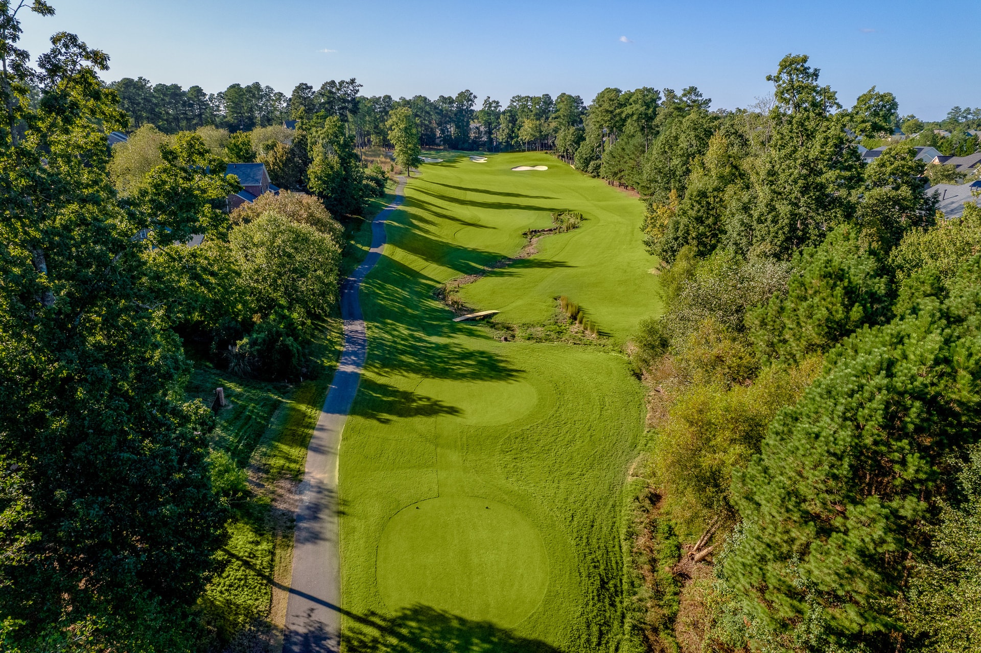This signature par four is a perfect way to end your round. A well-placed drive will tempt players to test their skills in negotiating this intimidating green setting. Surrounded by water on three sides and bordered by the Carolina ledgestone retaining wall, players may elect to play safe to the left.