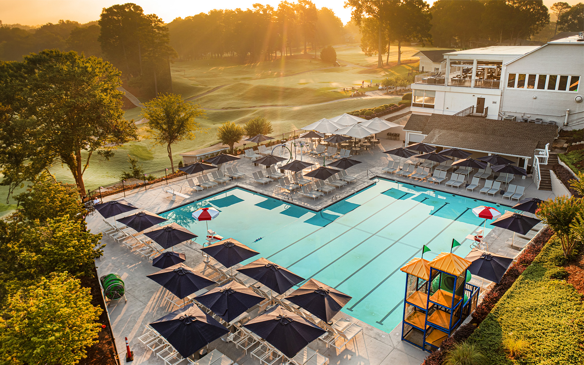 After swimming laps in the junior Olympic-size, six-lane competition pool (with a diving board and water slide!) or cooling off in the beautiful mushroom pool, families can soak up sun on the pool deck, grab a bite at the snack grill and simply enjoy themselves.