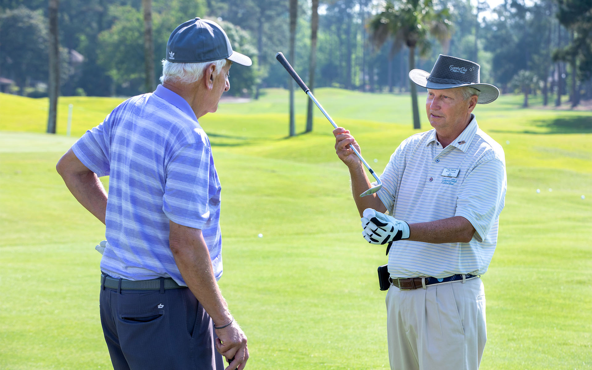 The golf course is an 18-hole Rees Jones design and was chosen as the local qualifying site for the 1999 and 2005 U.S. Opens. A challenging but fair layout with five sets of tees, the course presents distinct views with 14 doglegs and water on almost every hole. Players negotiate a stately pine forest, salt-water marshes and freshwater lagoons.