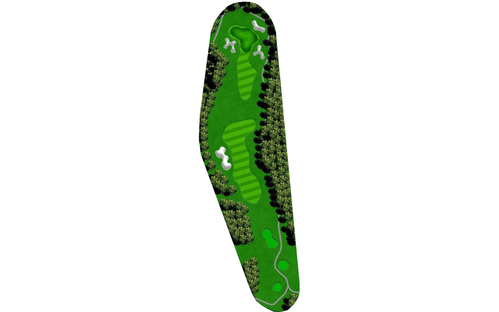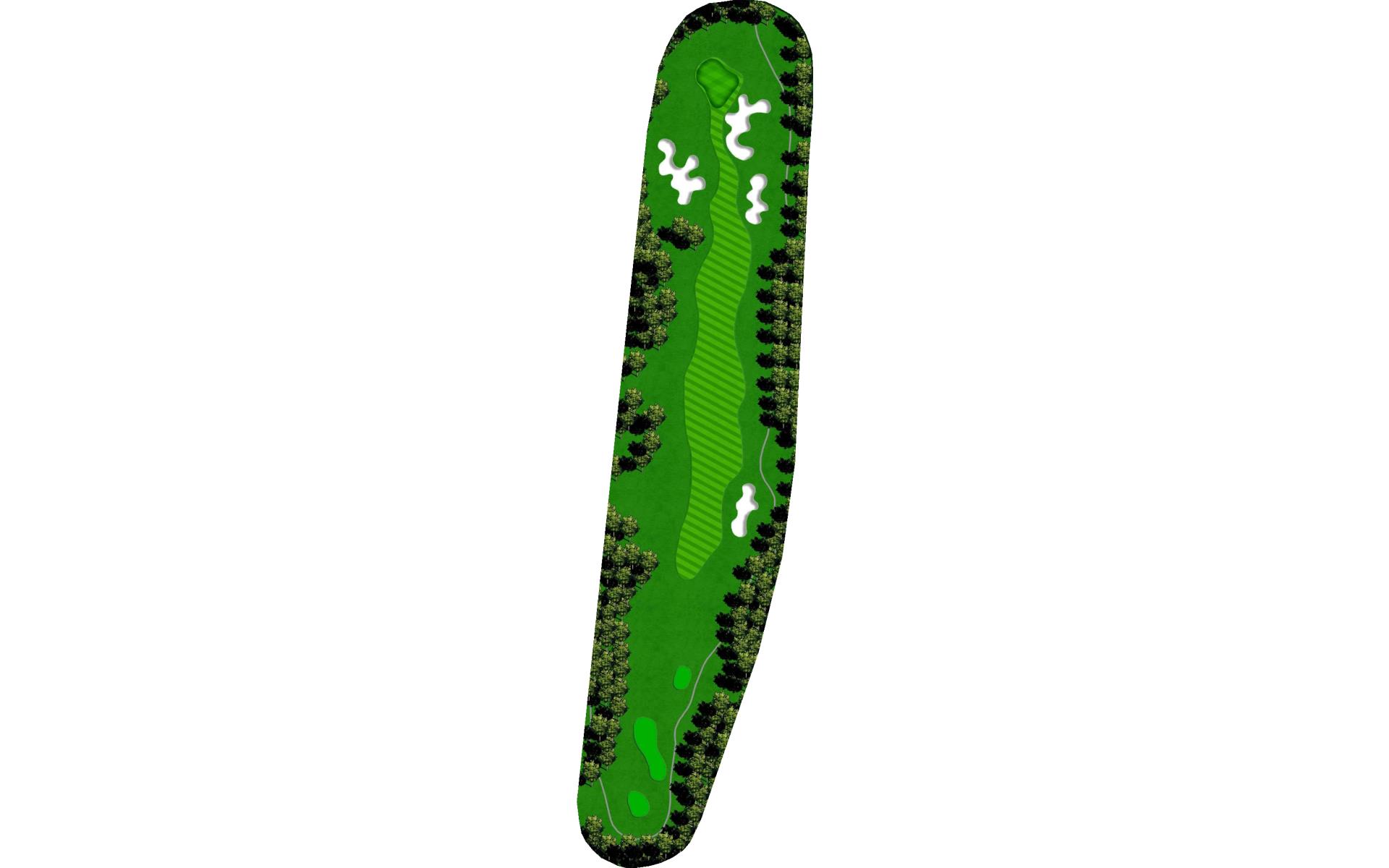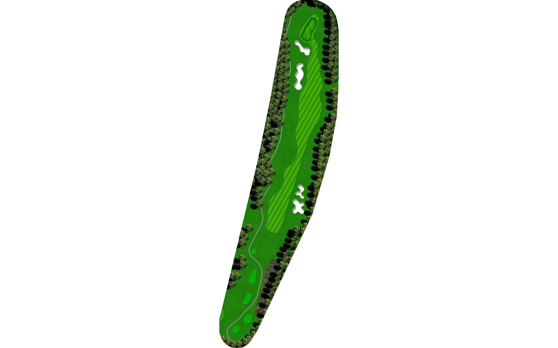 A good drive down the right side with a little draw will find the fairway. The green is deep but narrow, so an accurate approach is key to a good look for birdie.