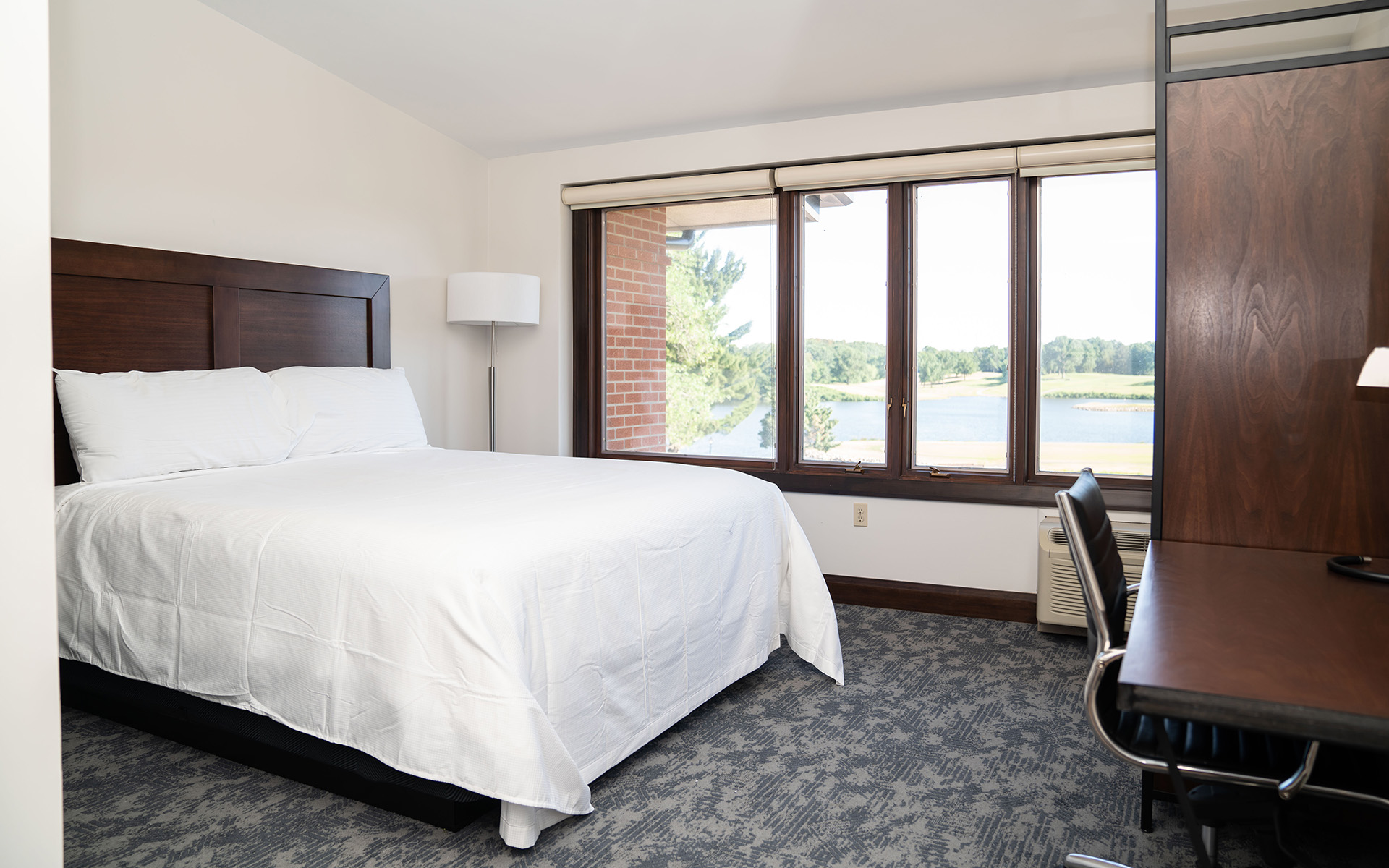 Each private Villa room features a private bath and king bed. All rooms are equipped with wireless internet, workstations, Lavazza coffee machines with a selection of coffees and their own dedicated walkout to the 360-degree views of your favorite courses. Never leave the green while maintaining privacy and suburb accommodation.