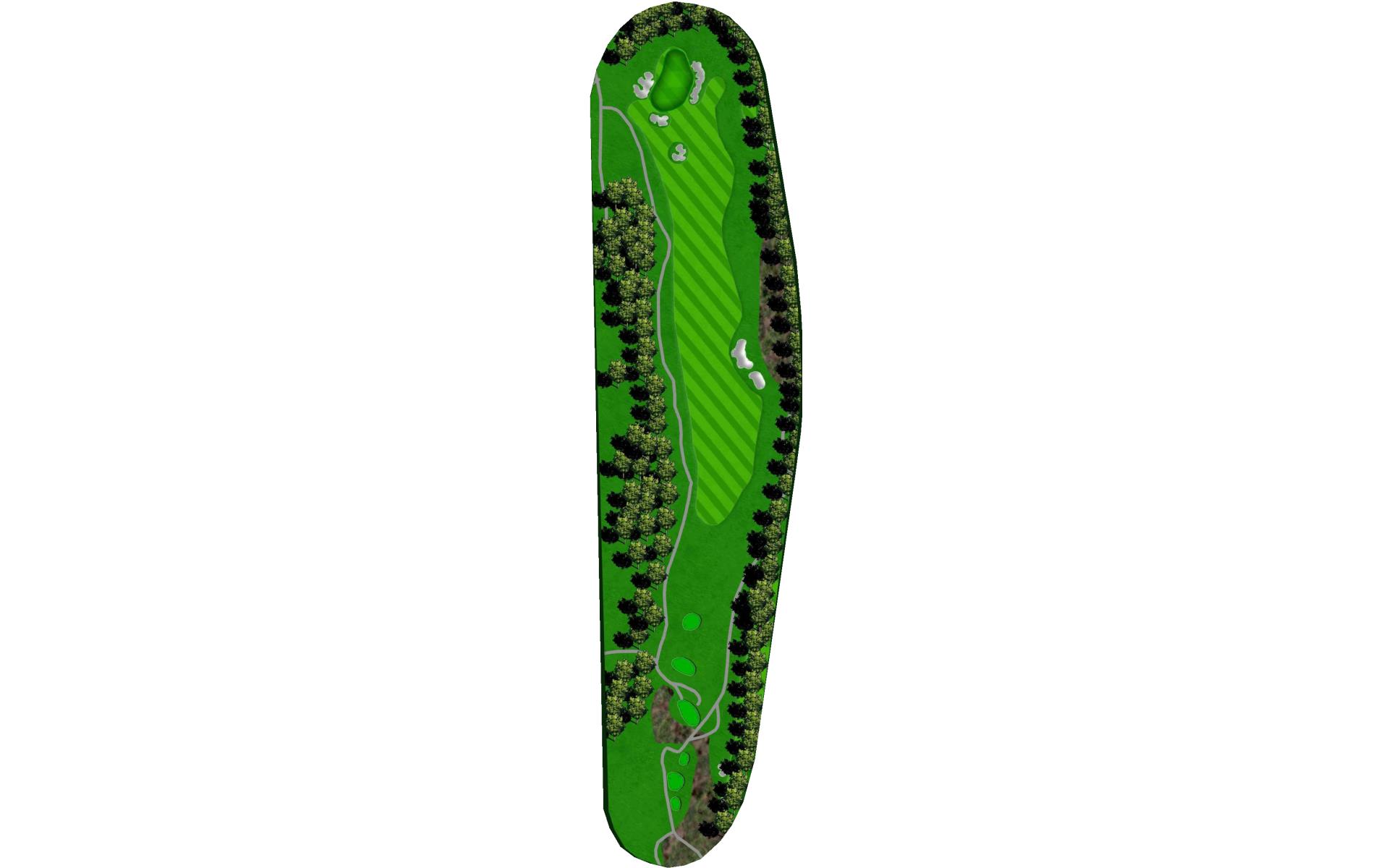 This picturesque holes play downhill, which means players can get a lot of runout on their drives. That may shorten the subsequent approach shot, but the farther down the hill players hit their drives, the more