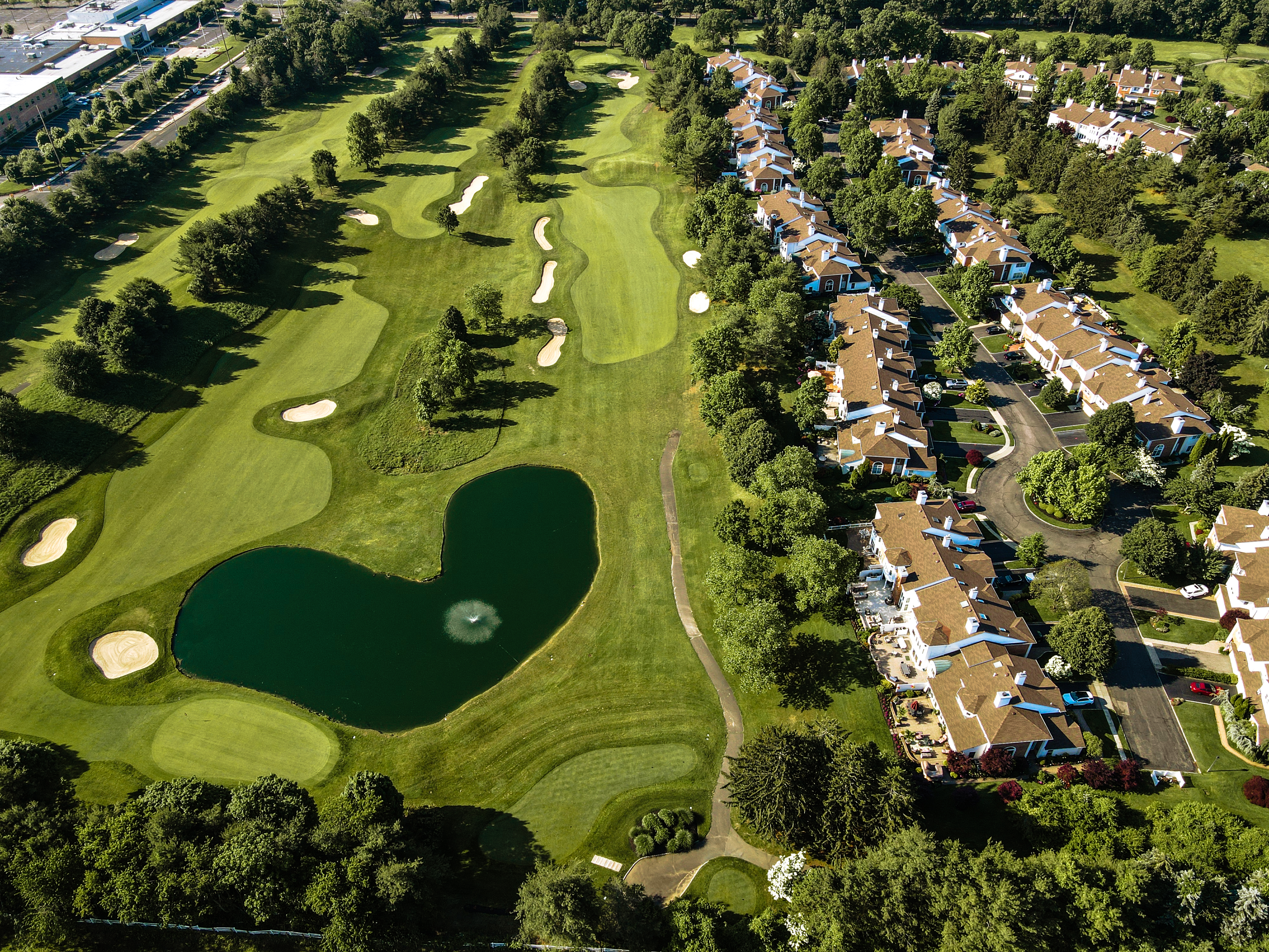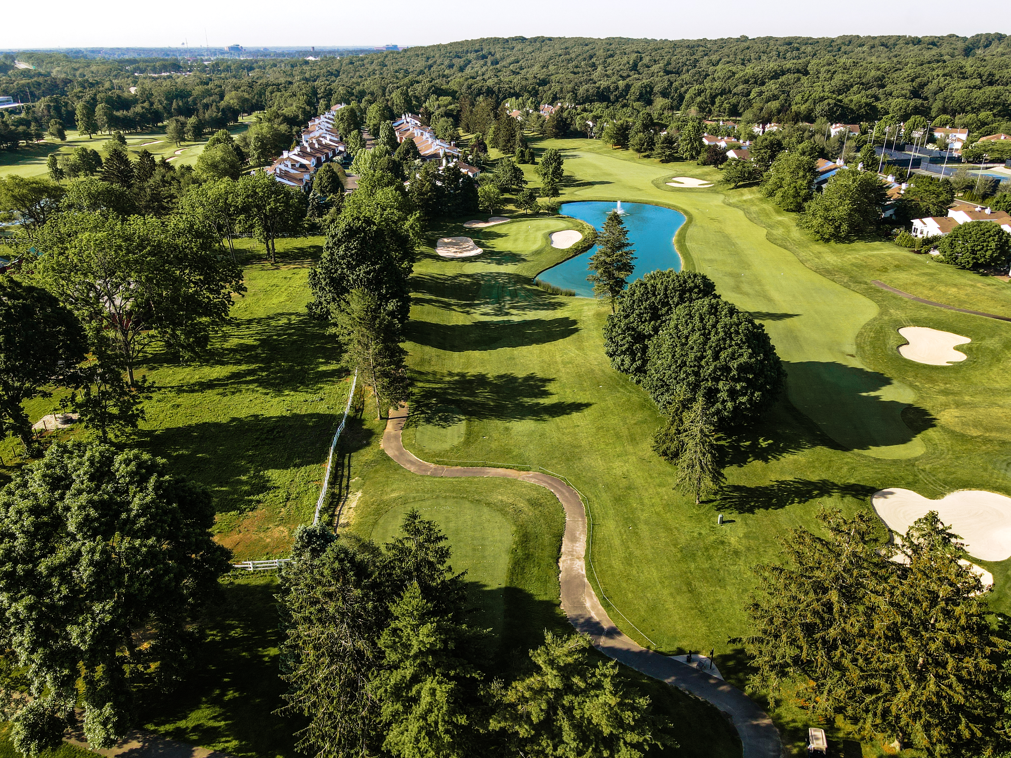 Water is in play on your tee shot and your second shot. Play smart and be rewarded in front of the crowd on the back patio of the clubhouse.