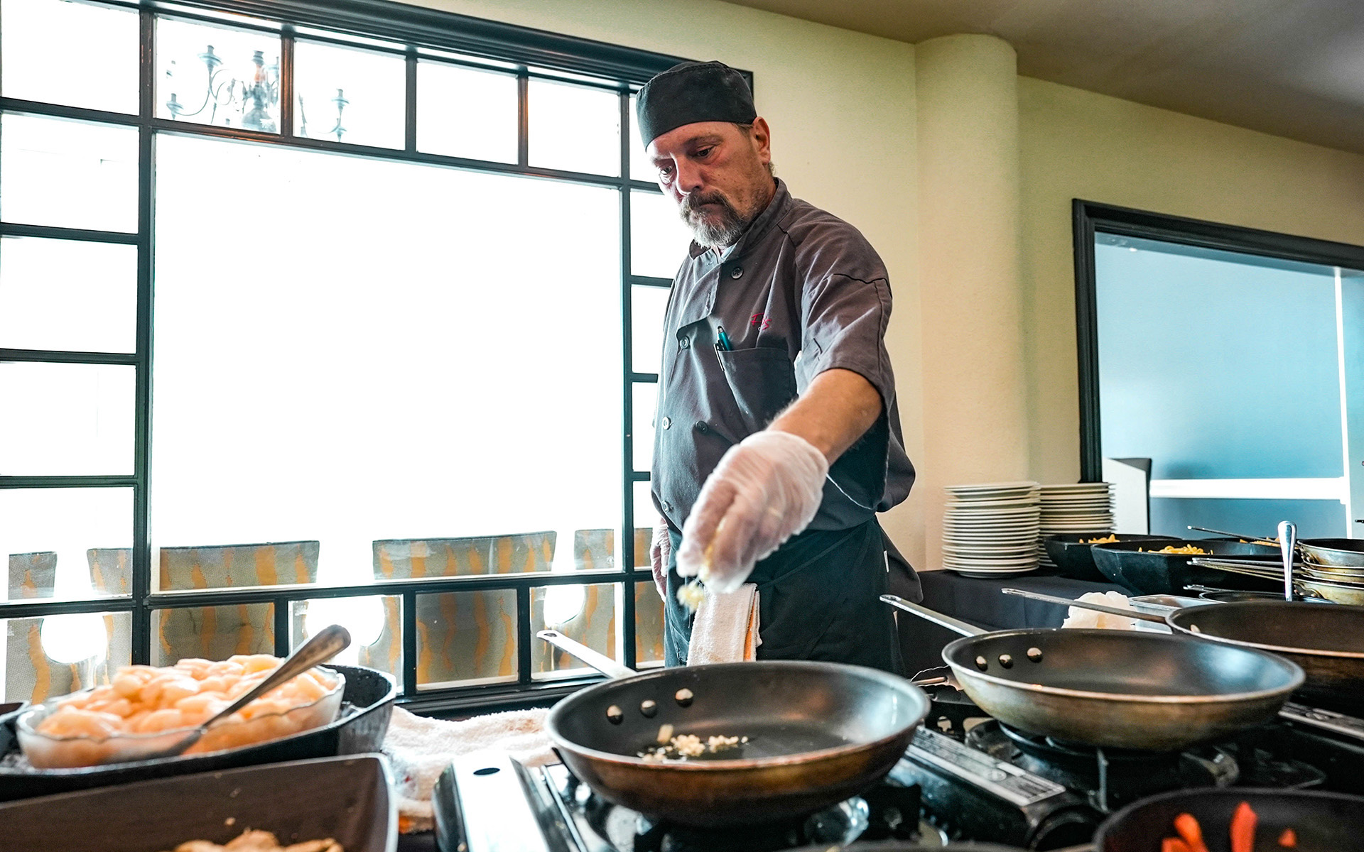 The Fireside Café is a great place to enjoy a casual meal with family and friends. Overlooking the pool and lake, the café offers both indoor and outdoor dining options. The menu includes a variety of creative appetizers, healthy salads, sandwiches, snacks, and a full bar.