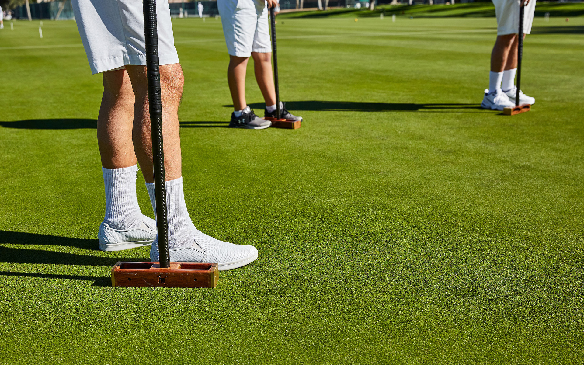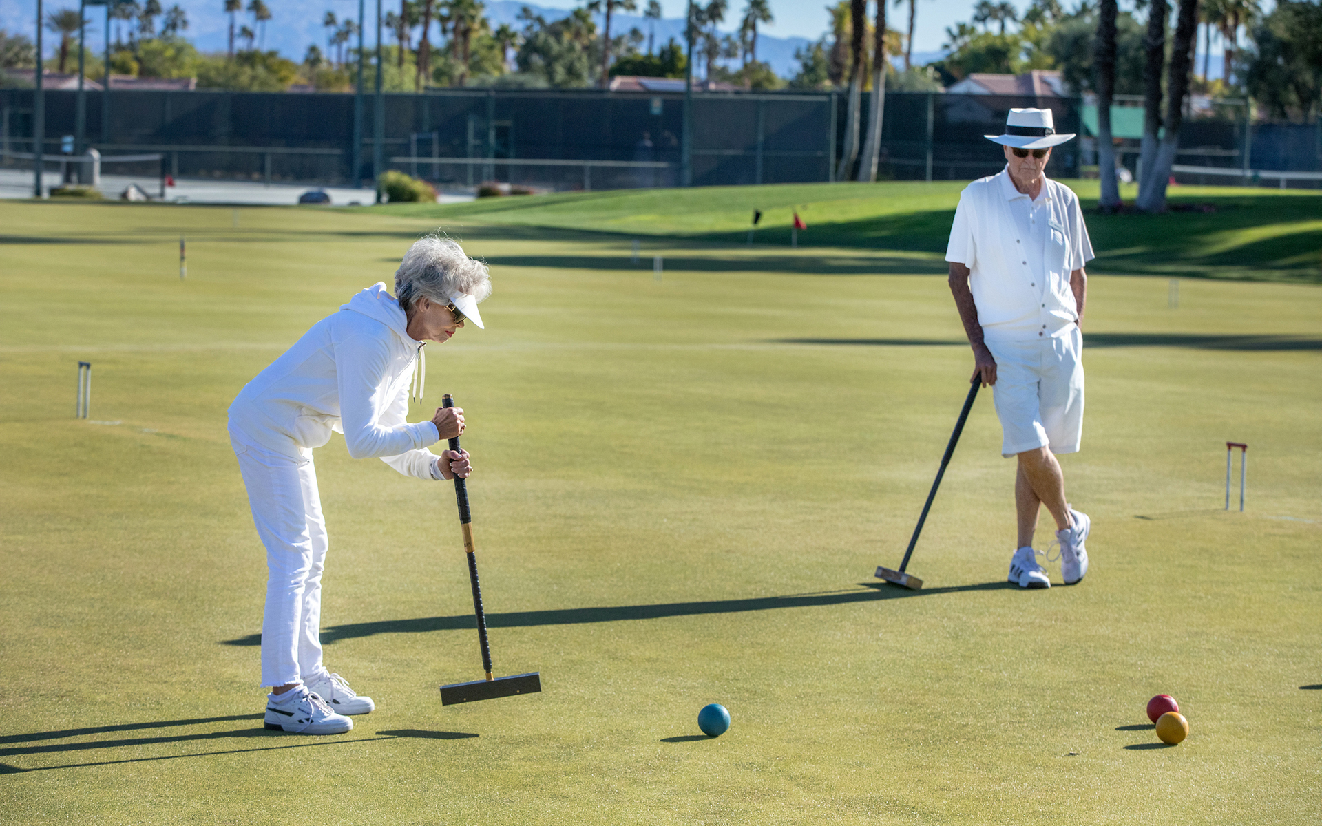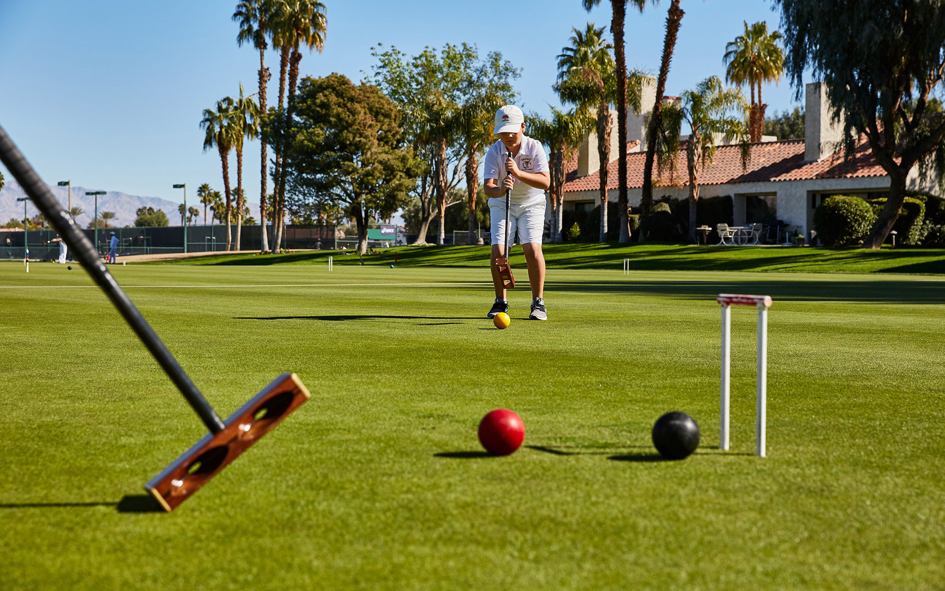 Croquet at Mission Hills offers a unique opportunity to learn six-wicket croquet—a challenging and strategic game derived from British traditions. Our teaching professional, Josh Freeth, one of the world’s top croquet players, is on-site from November to April. He leads group clinics and private lessons designed to guide you from beginner to advanced play.