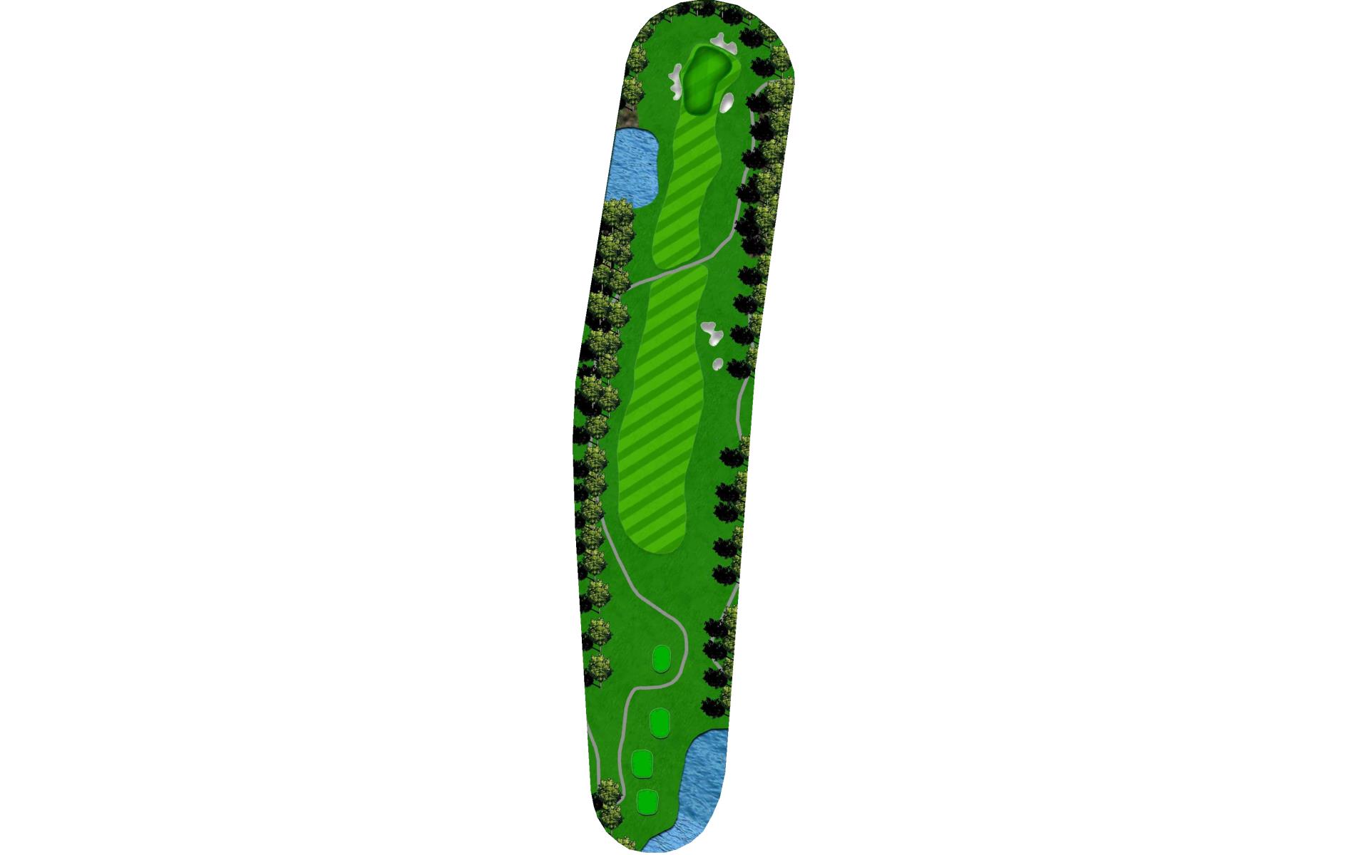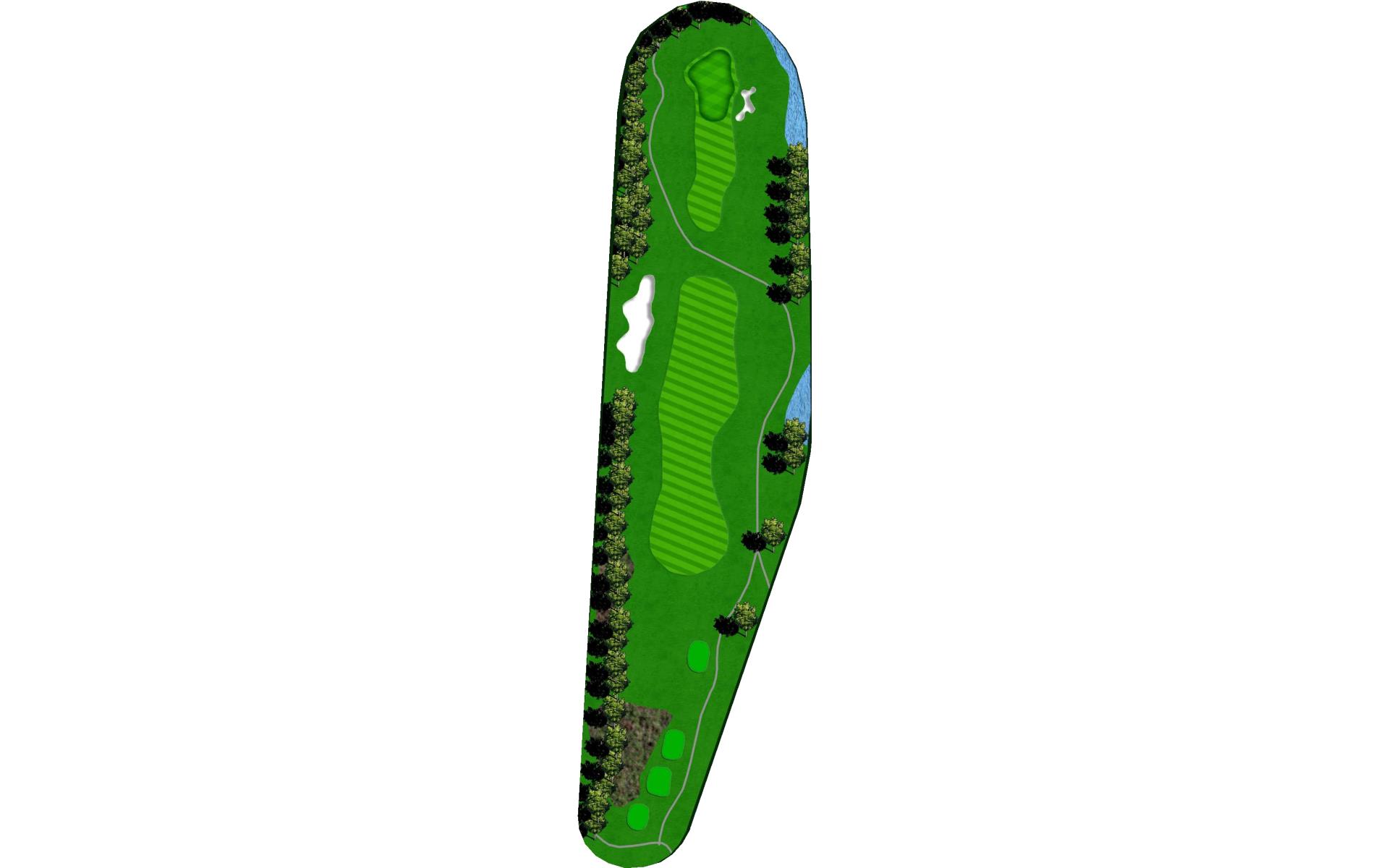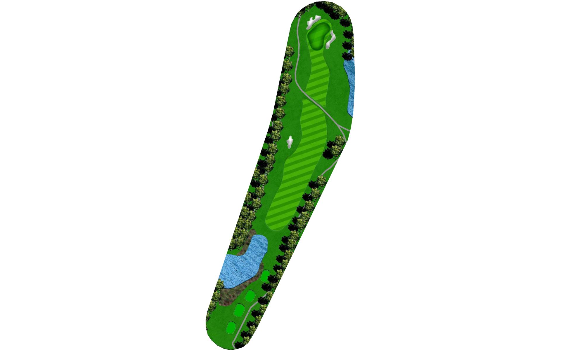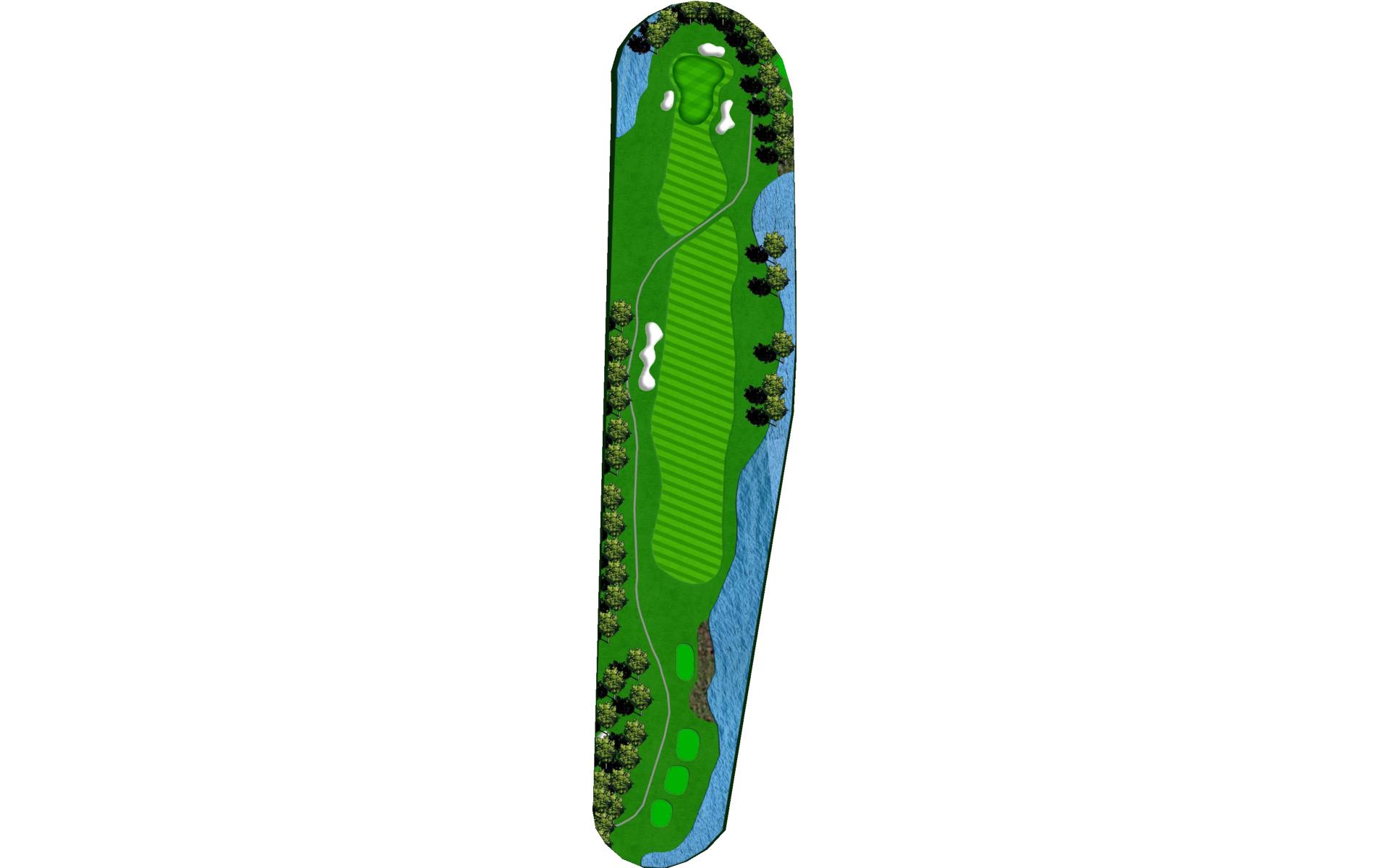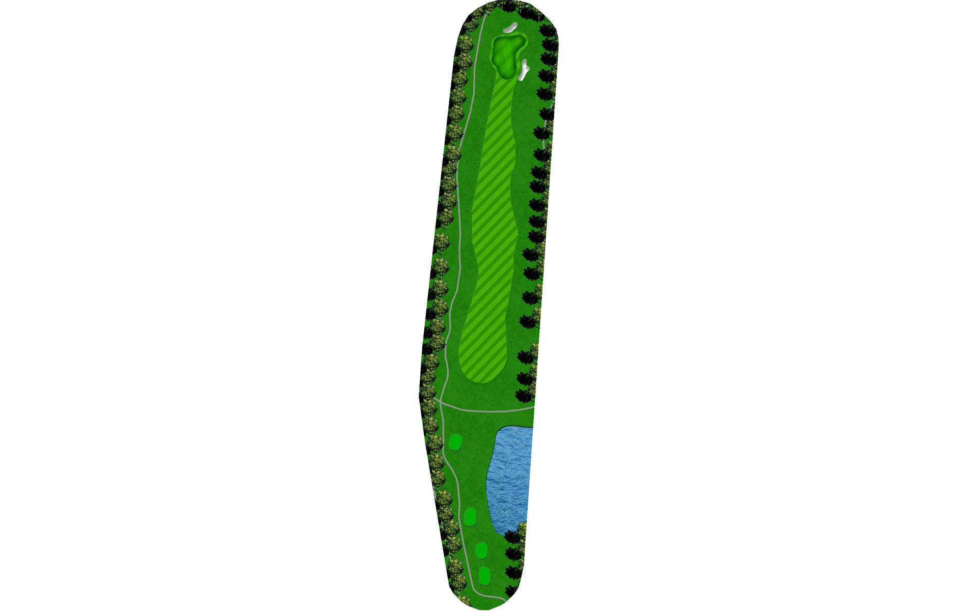 Favor right side fairway off the tee. Long hitters can reach water that cuts in at the end of the fairway. This hole is very exposed to wind, don’t let it blow you left.