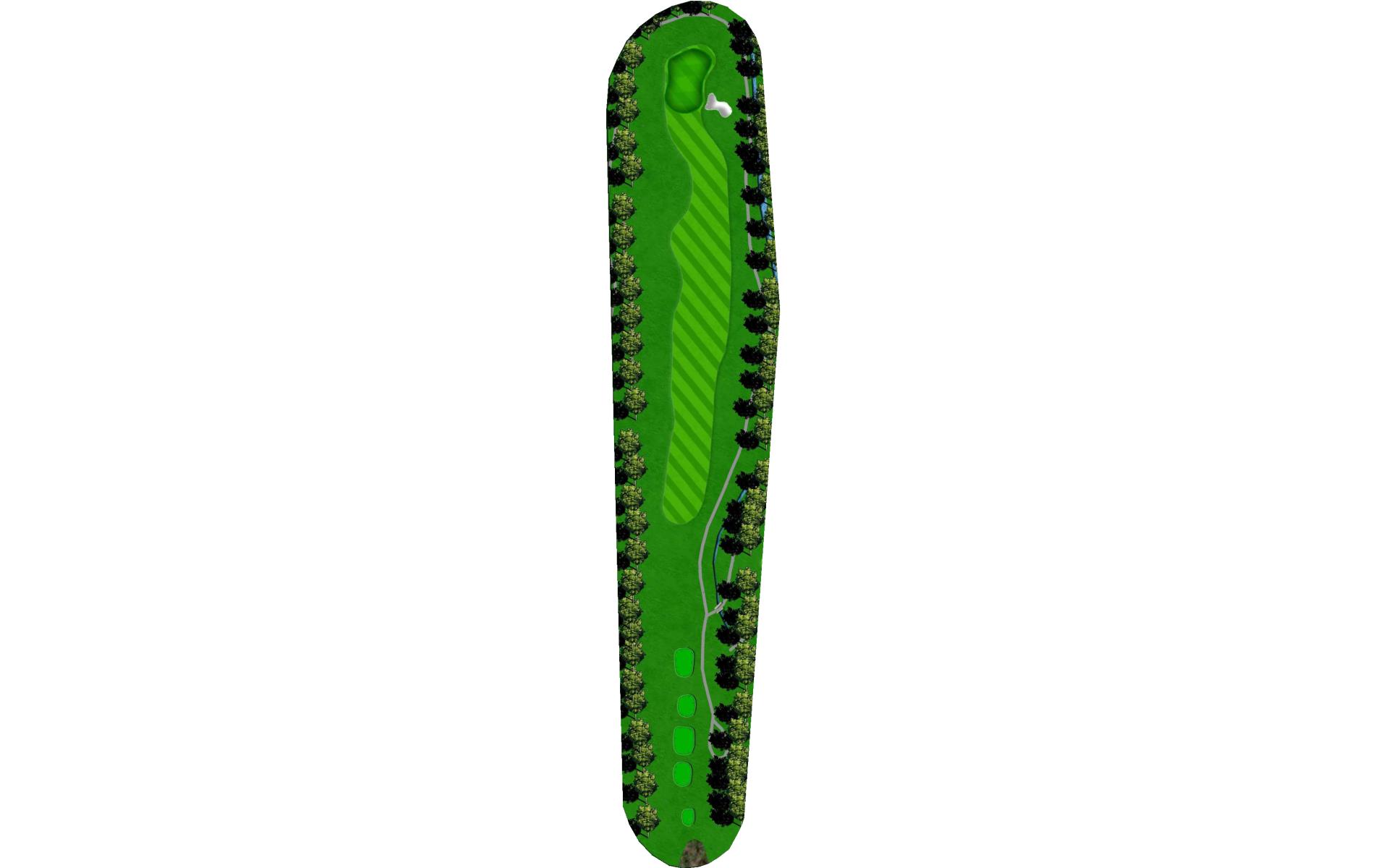 One of our longer par 4’s. OB left. Green guarded long and right by bunkers.
