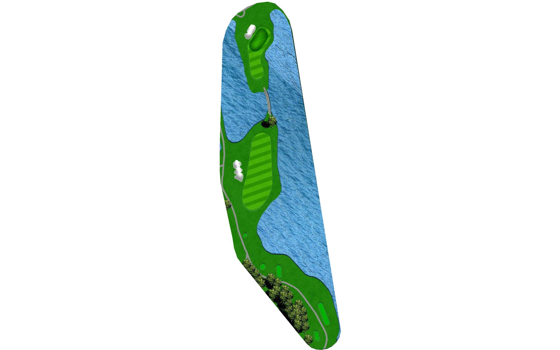 Running along the lake's edge, this par 4 turns gently to the right. The fairway runs out at around 140 yards. The approach shot is all carry over water with water protecting left and long of the green.
