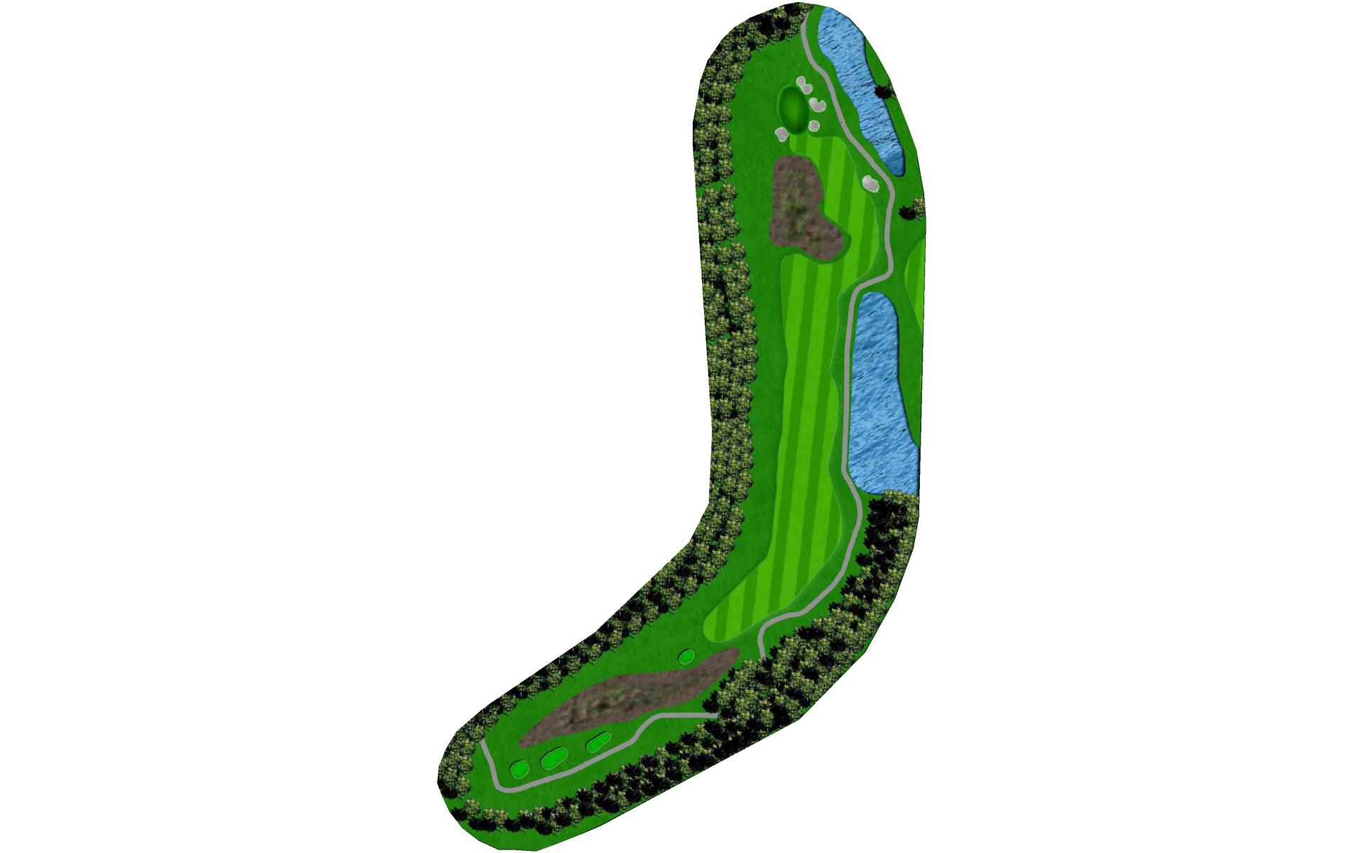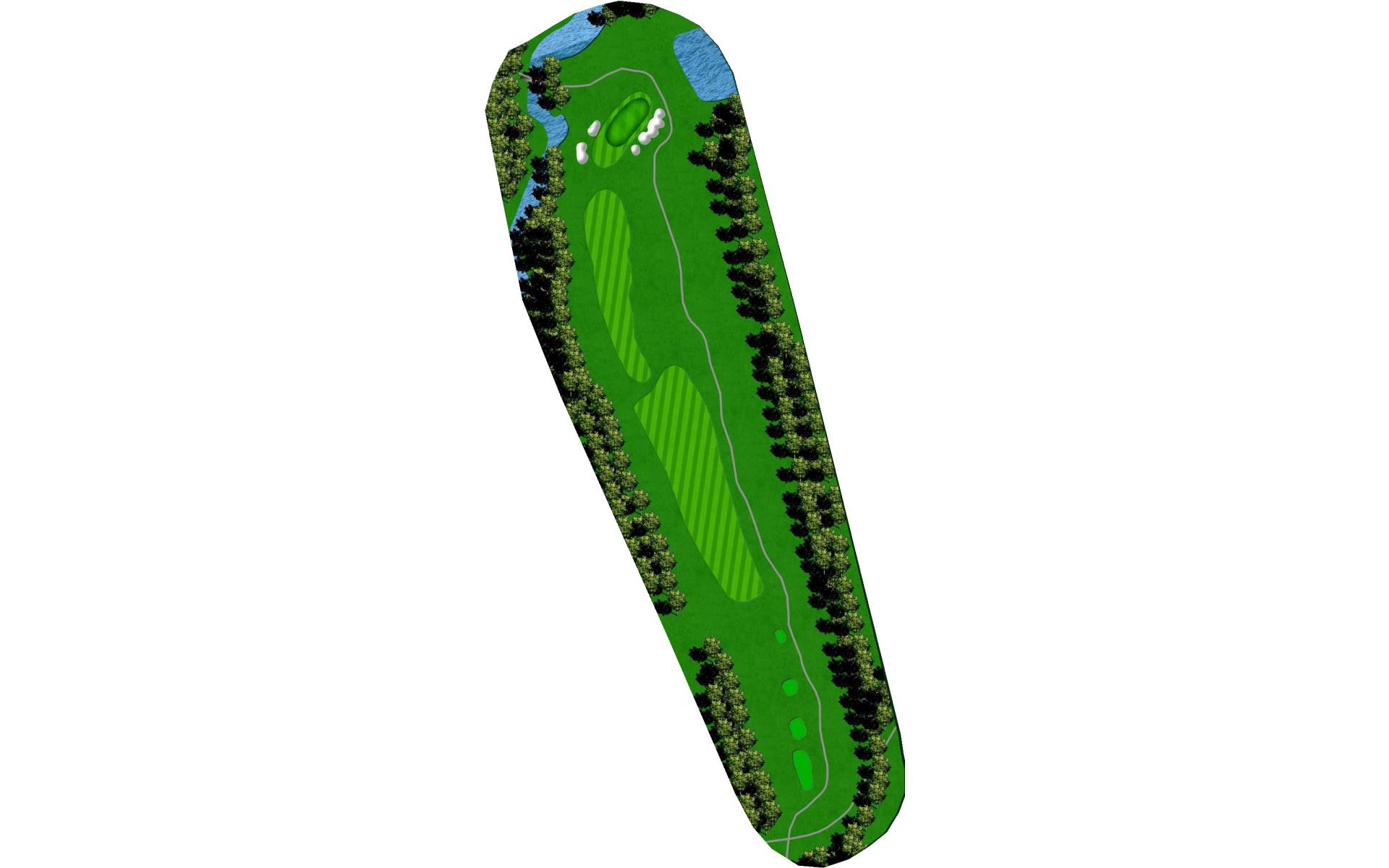 A straight away par 4 with a wetland area 250 yards off the tee requiring long hitters to lay-up off the tee. A large lake on the entire right side of this hole comes into play. A large green with many challenging hole locations.