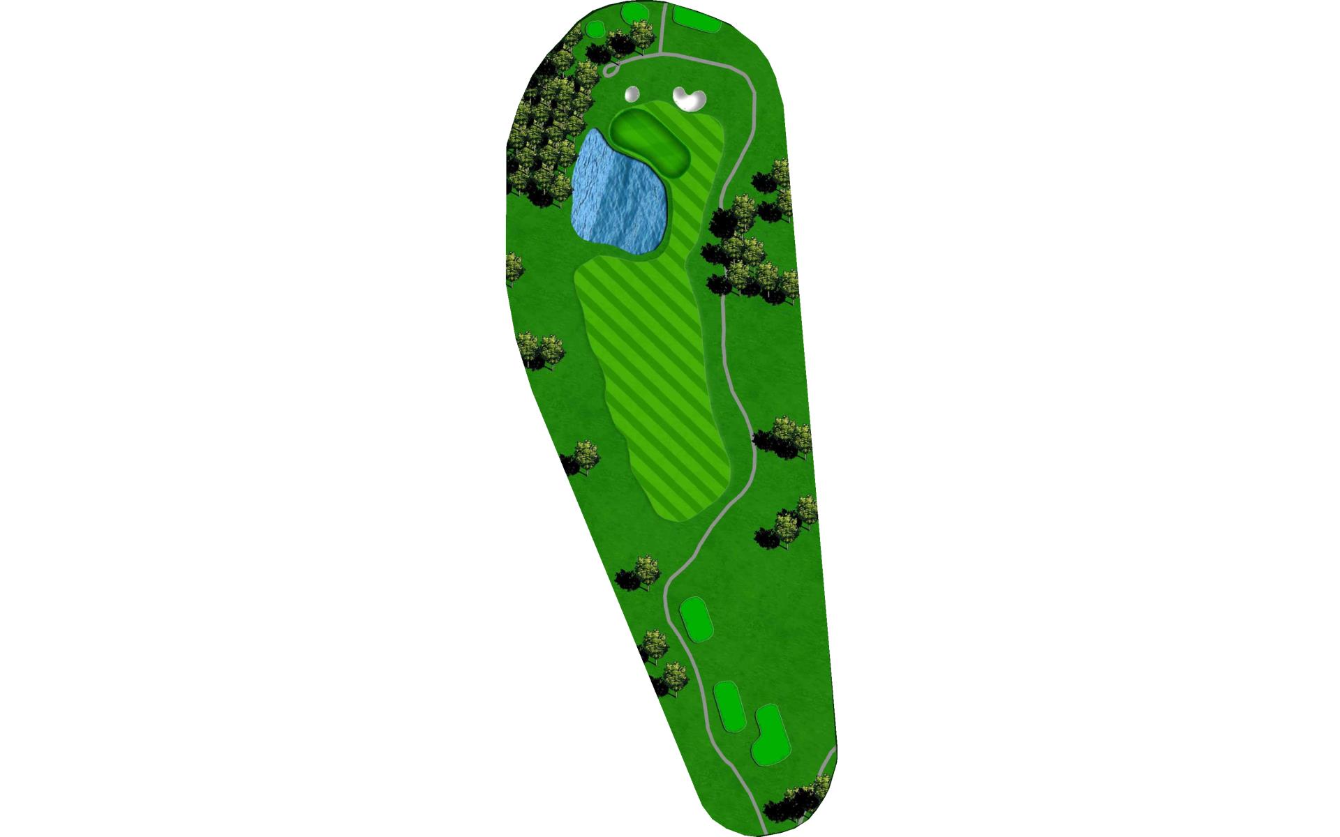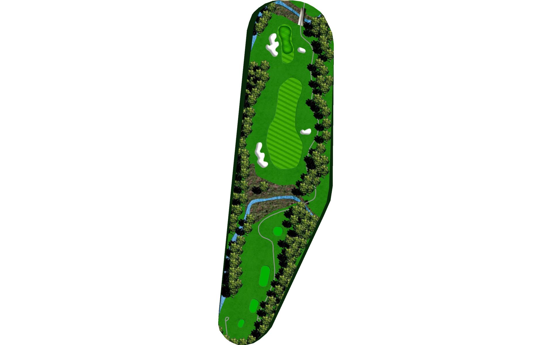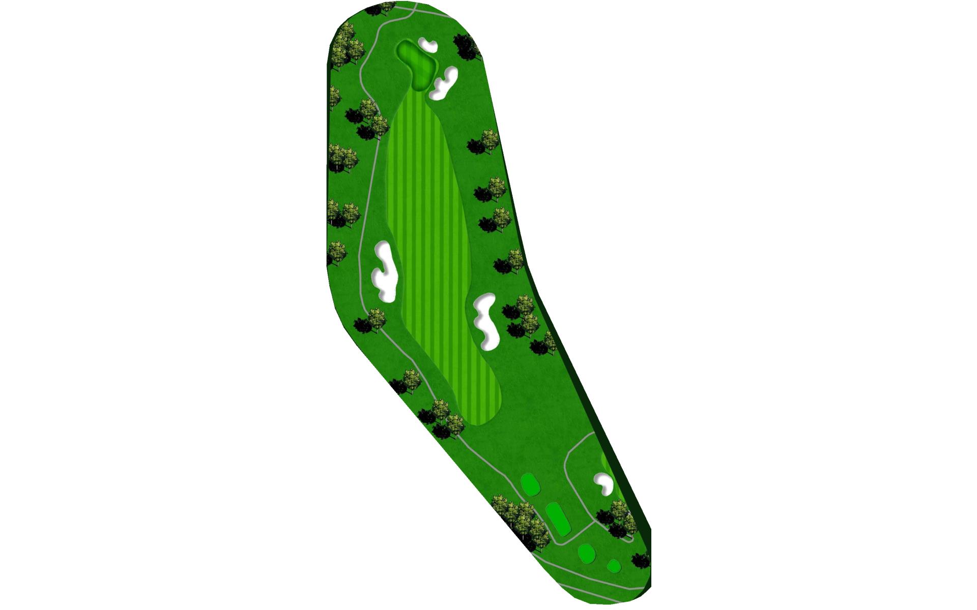 A long mid to long iron will have to be accurate to this heavily guarded green complex. Although the green is guarded in front, the shot that goes over is an almost automatic bogie. The green is narrow from the right side to the middle of the green and then expands from front to back on the left side of the green. If the pin is in a favorable spot this hole can be attacked.