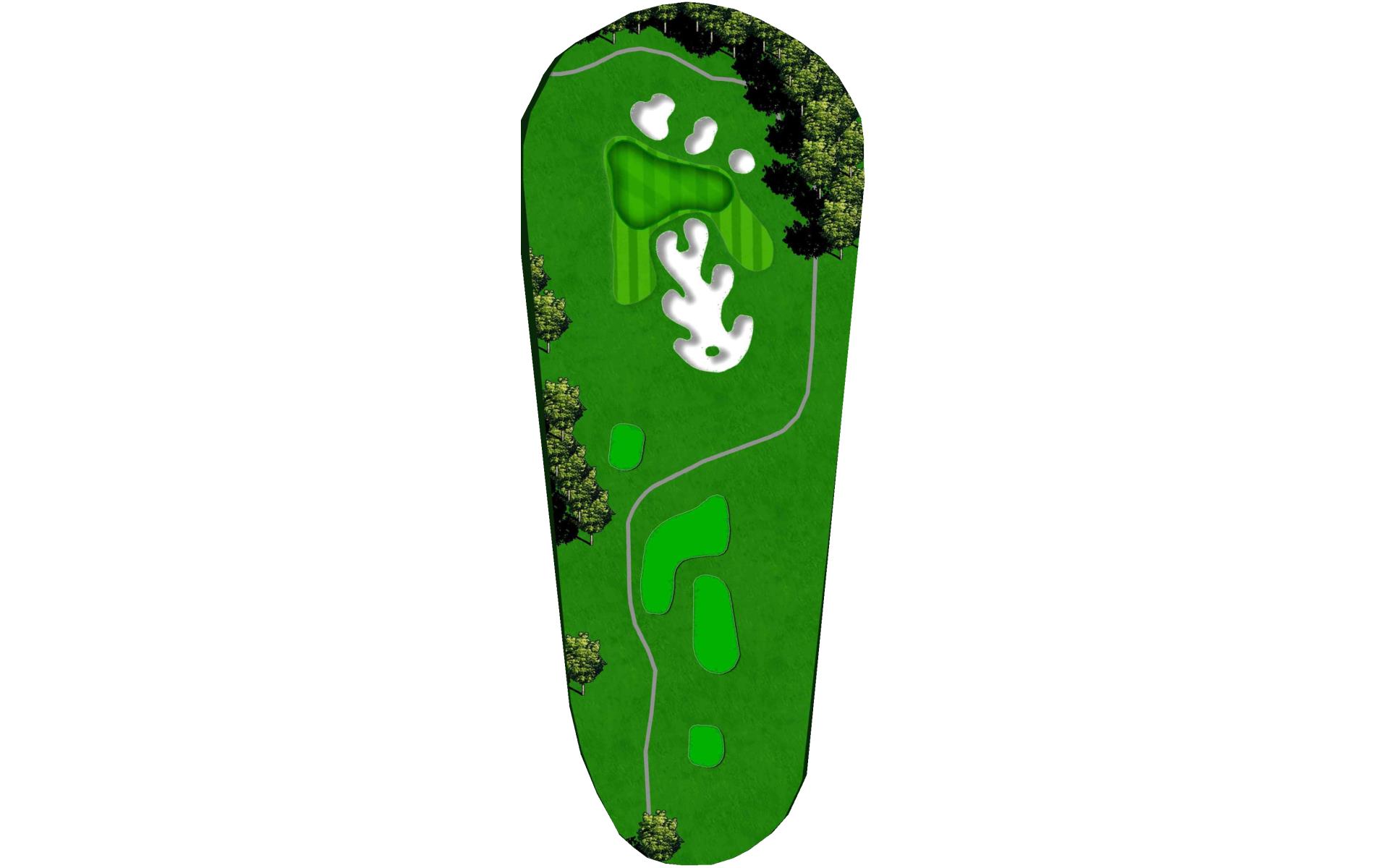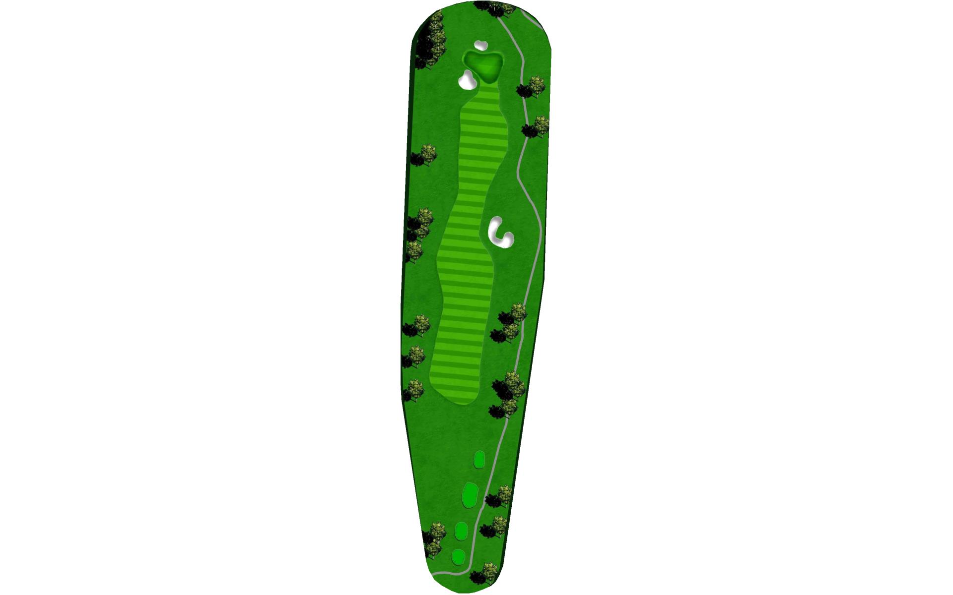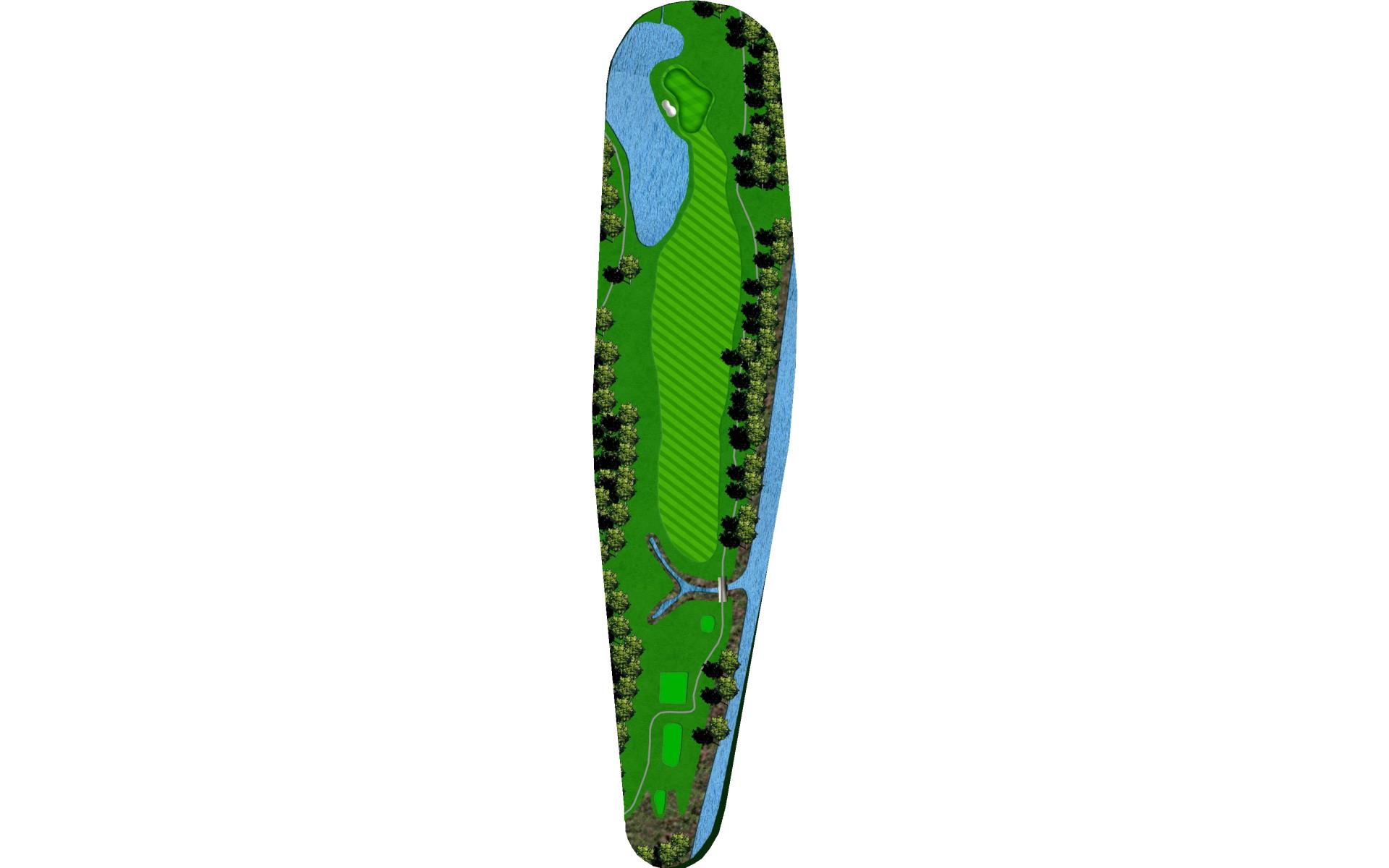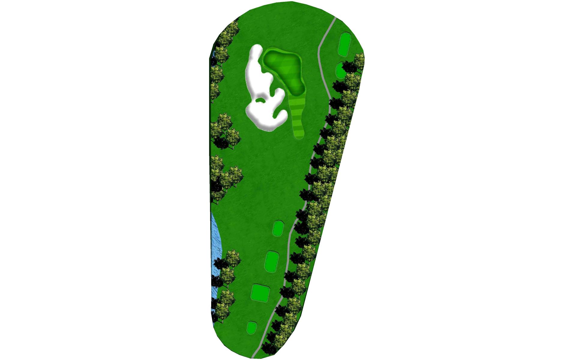 A long mid to long iron will have to be accurate to this heavily guarded green complex. Although the green is guarded in front, the shot that goes over is an almost automatic bogie. The green is narrow from the right side to the middle of the green and then expands from front to back on the left side of the green. If the pin is in a favorable spot this hole can be attacked.