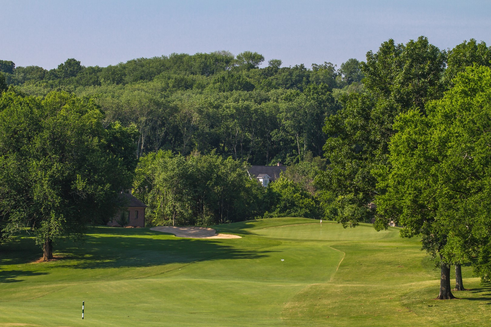 Dog leg left par 4 with no room to miss left and only minimal room right. We have a small creek right that can grab a missed shot. Second shot plays uphil to this green that has a narrow opening.