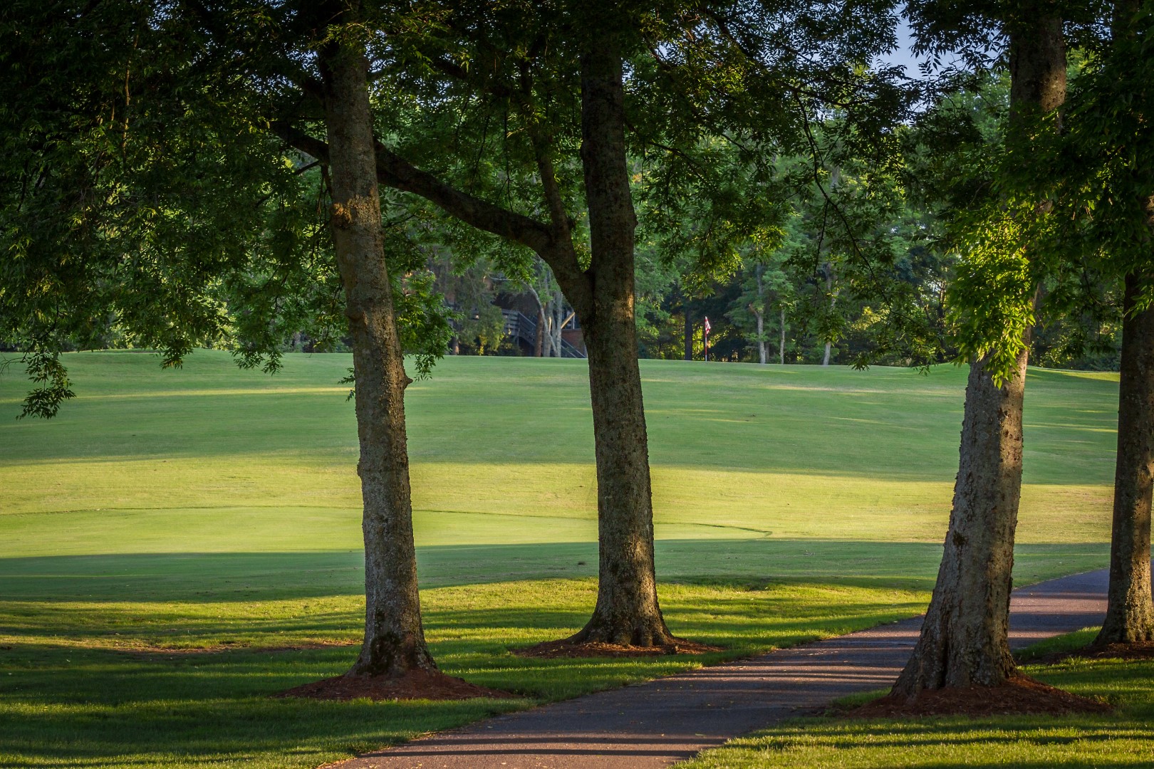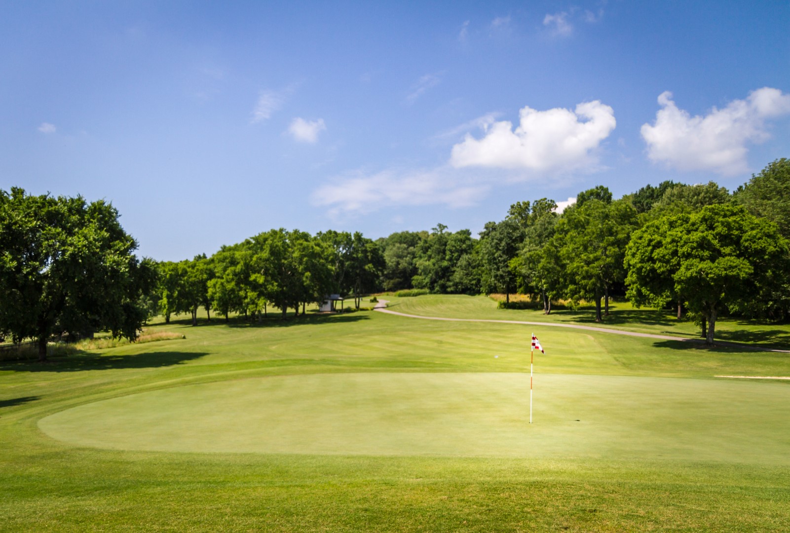 A uphill dog leg left can be unfriendly if you miss left. Missing right will bring trees into play. Second shot plays slightly long with a medium sloped green.