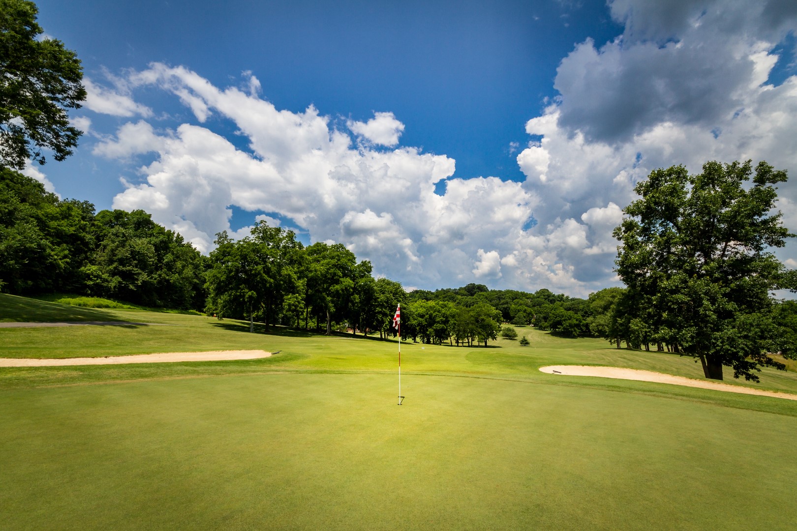 One of our tougher holes is this dog leg right uphill par 4. The second shot can play 2 clubs longer at times with this multiple tiered green.