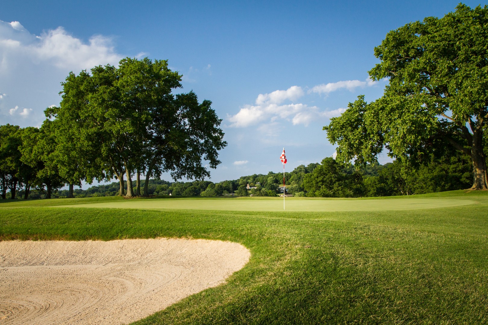 This dog leg left needs a tee shot that leaves the 140-160 range into the tee. The green is heavily bunkered from the front.