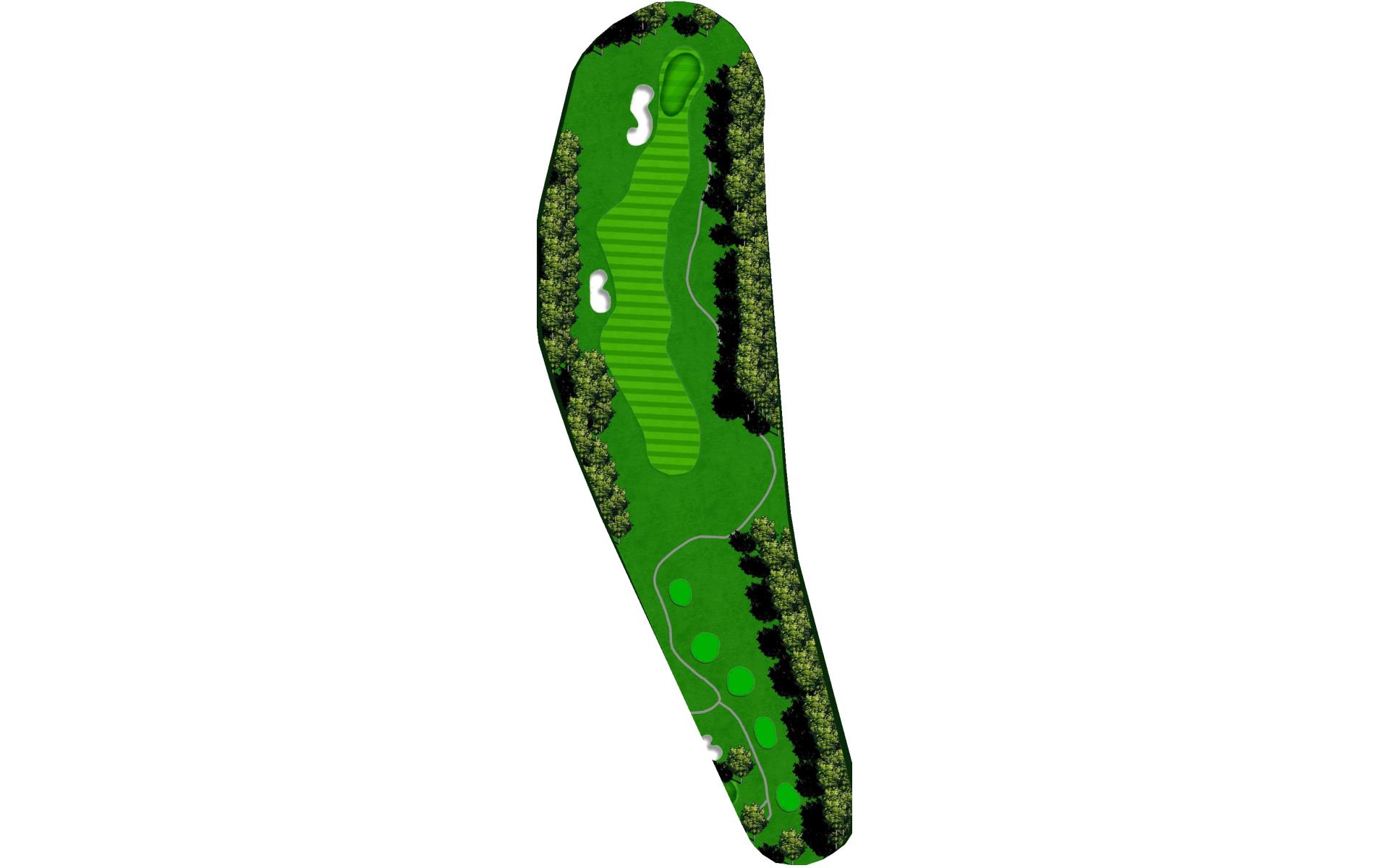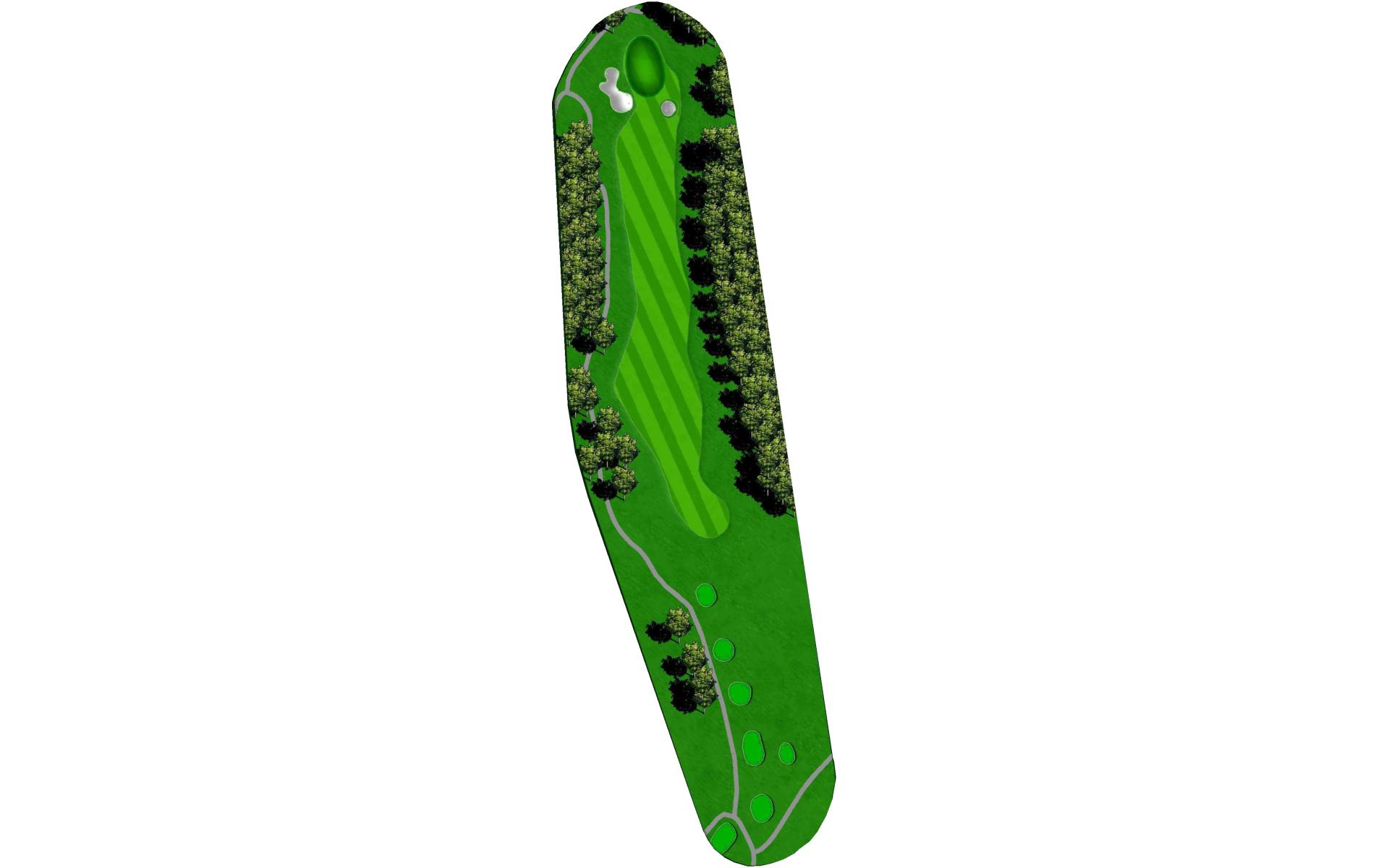 This Par 3 is the Deuce’s Signature Hole. The green sits 100 feet below the back tees. Figuring out what club to hit from any of the 9 different tee boxes is quite a challenge.