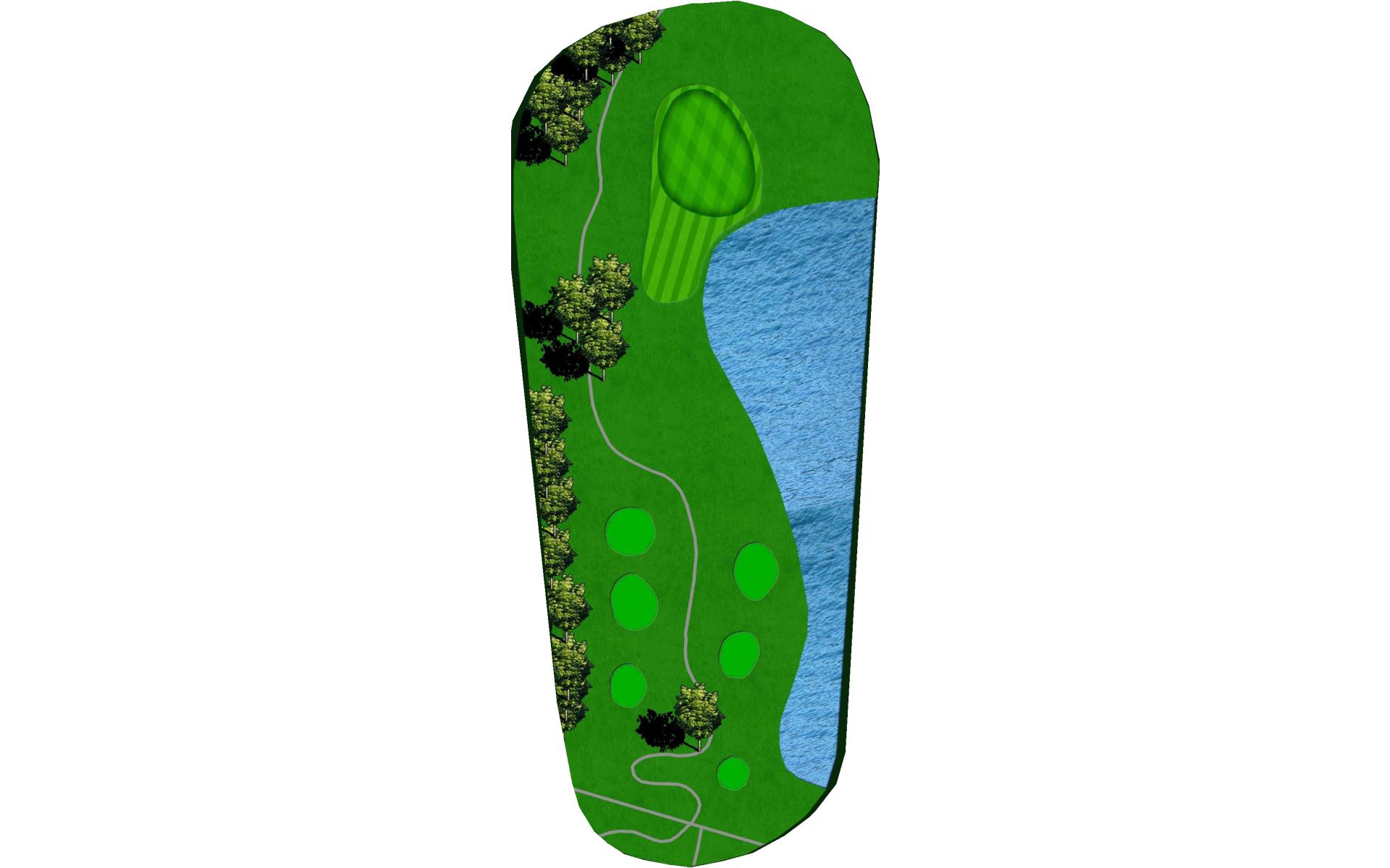 This short uphill Par 4 has the narrowest fairway on the golf course. Water to the left and a fairway bunker on the right encourage an iron or fairway wood of the tee. A large tier in this green requires that you plan an accurate approach.