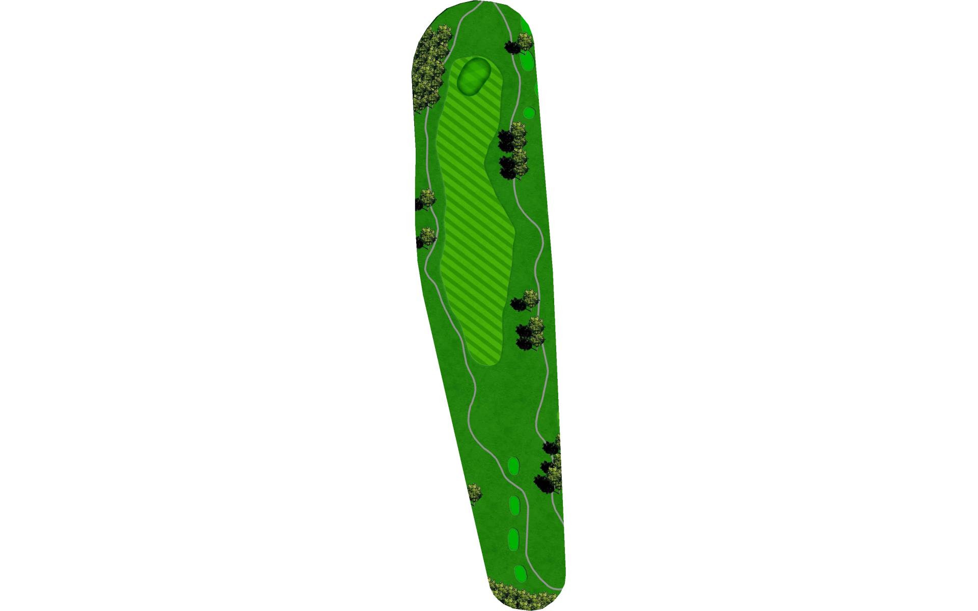 This long Par 4 is no push-over. Hitting a big tee shot here will be helpful. Make sure your second shot is accurate because your target is the smallest green on the course.