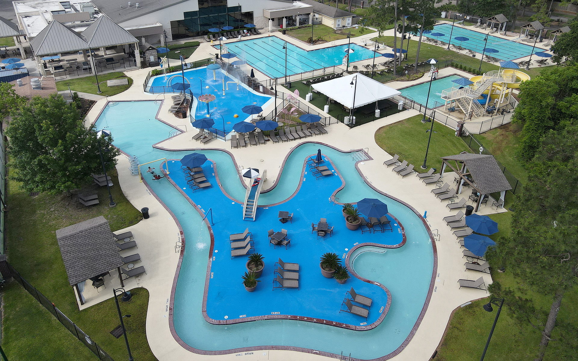 The Clubs of Kingwood Water Park features provide fun for the entire family. Five recreational areas offer something for everyone! Enjoy the adult pool and pool area, Big Kahuna water slide and landing pool, family pool and diving area, lazy river, and splash pad play area.