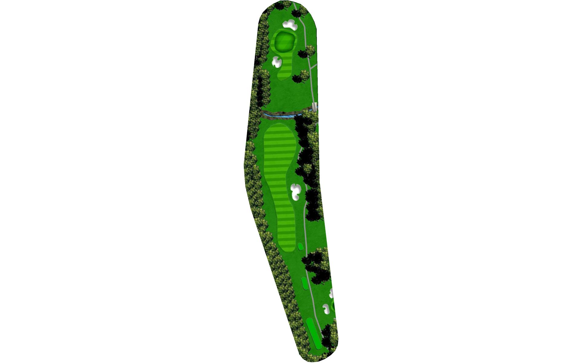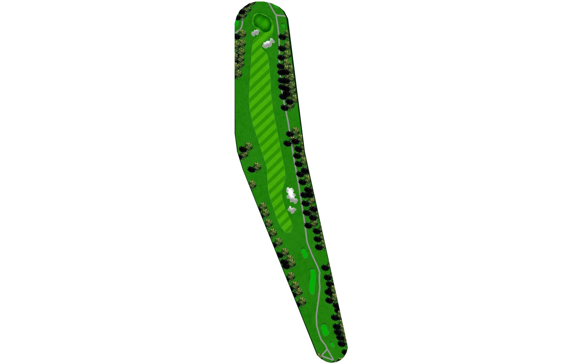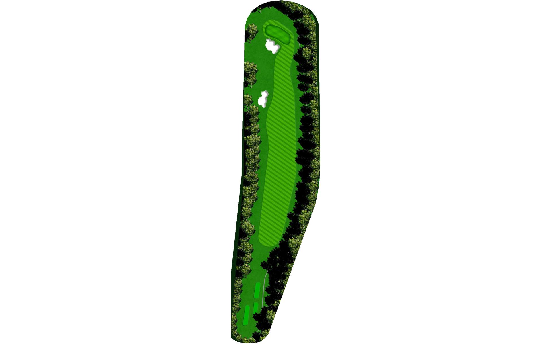 This long par 5 will require a accurate 3rd to a small green. Laying up to your favorite distance is the key.
