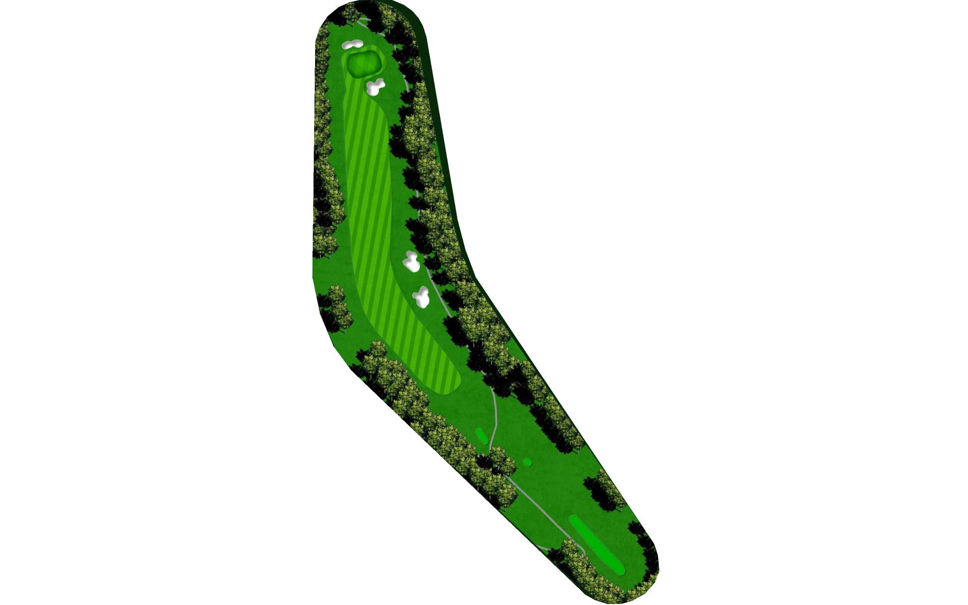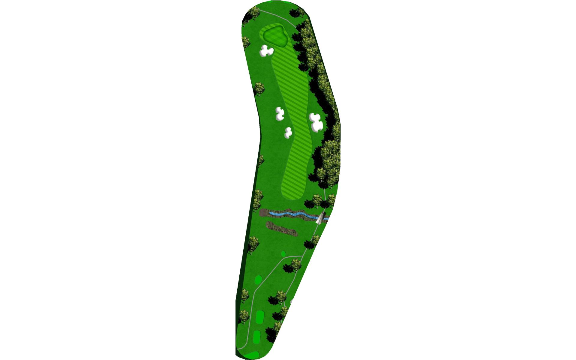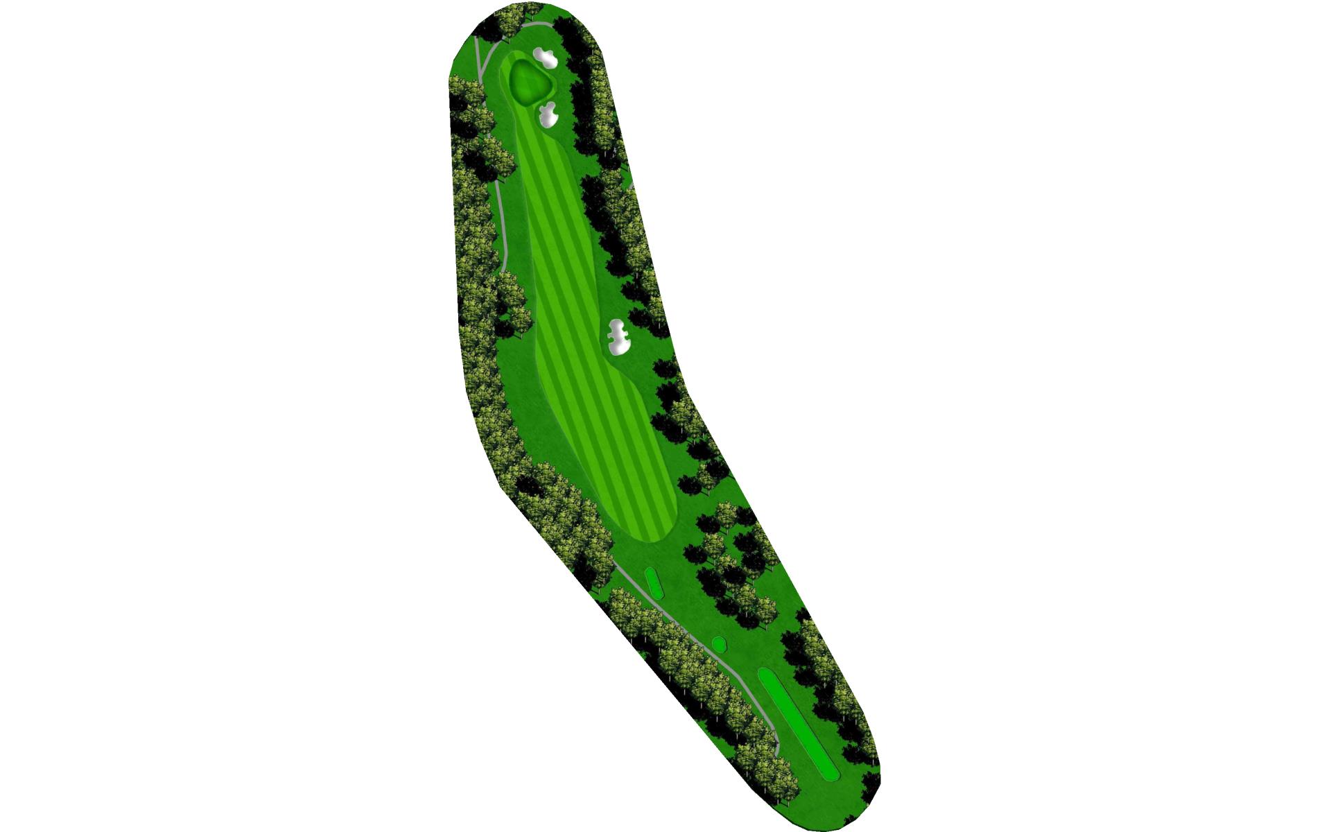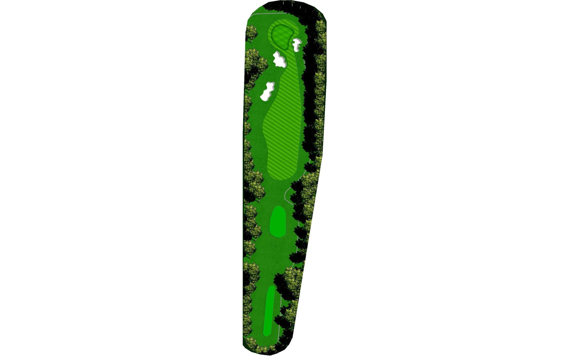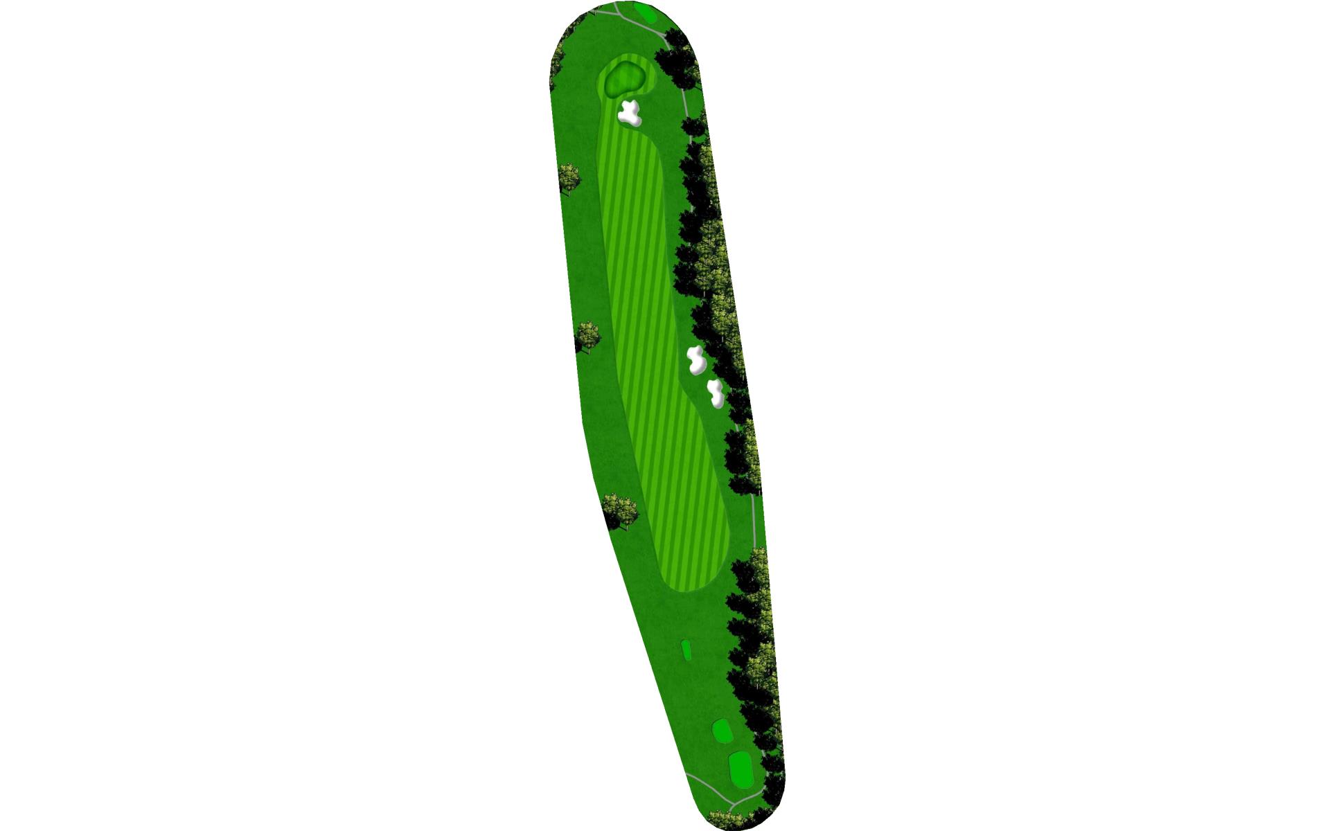 A slight dogleg left par 4 avoid the fairway bunkers for a short second.