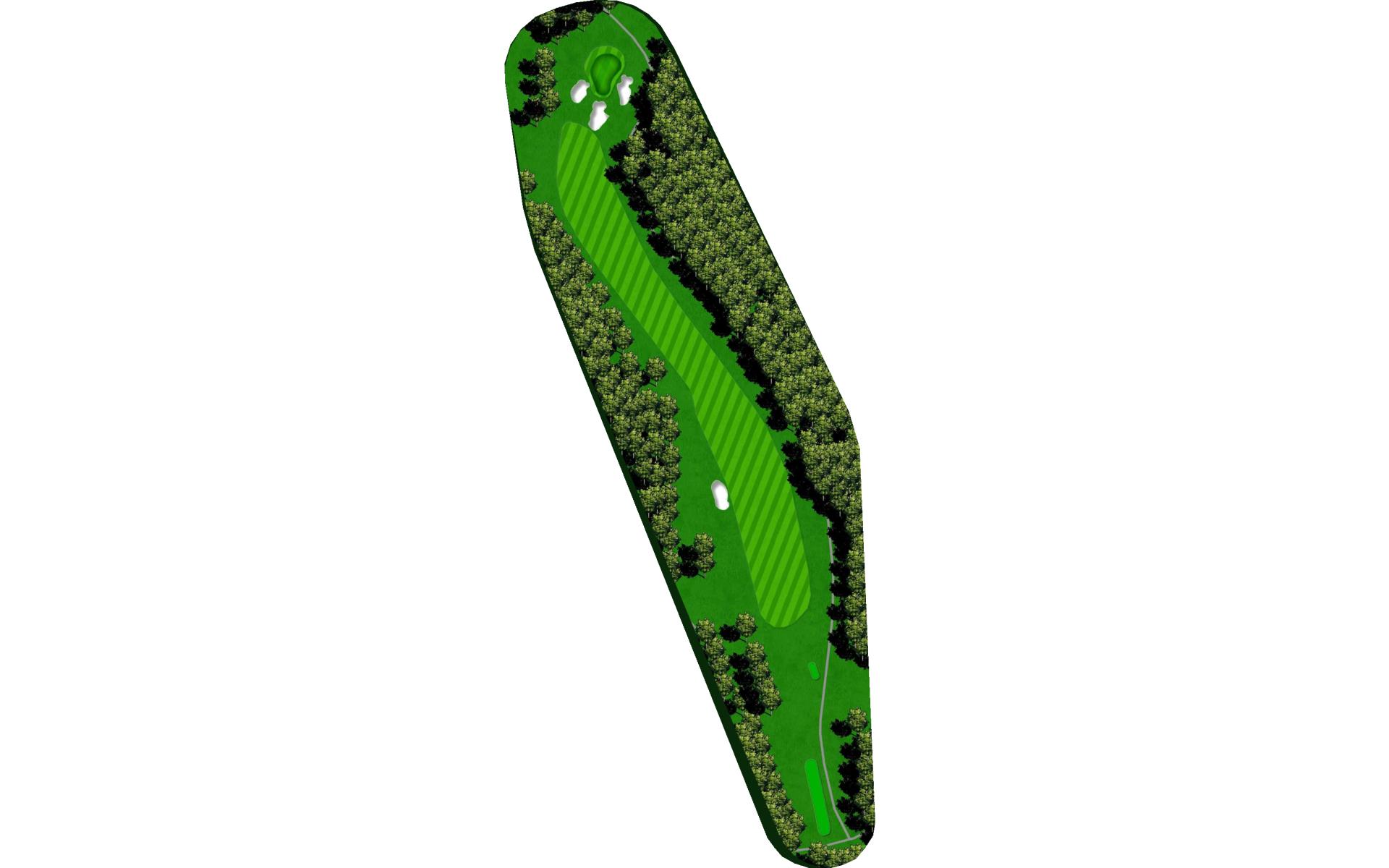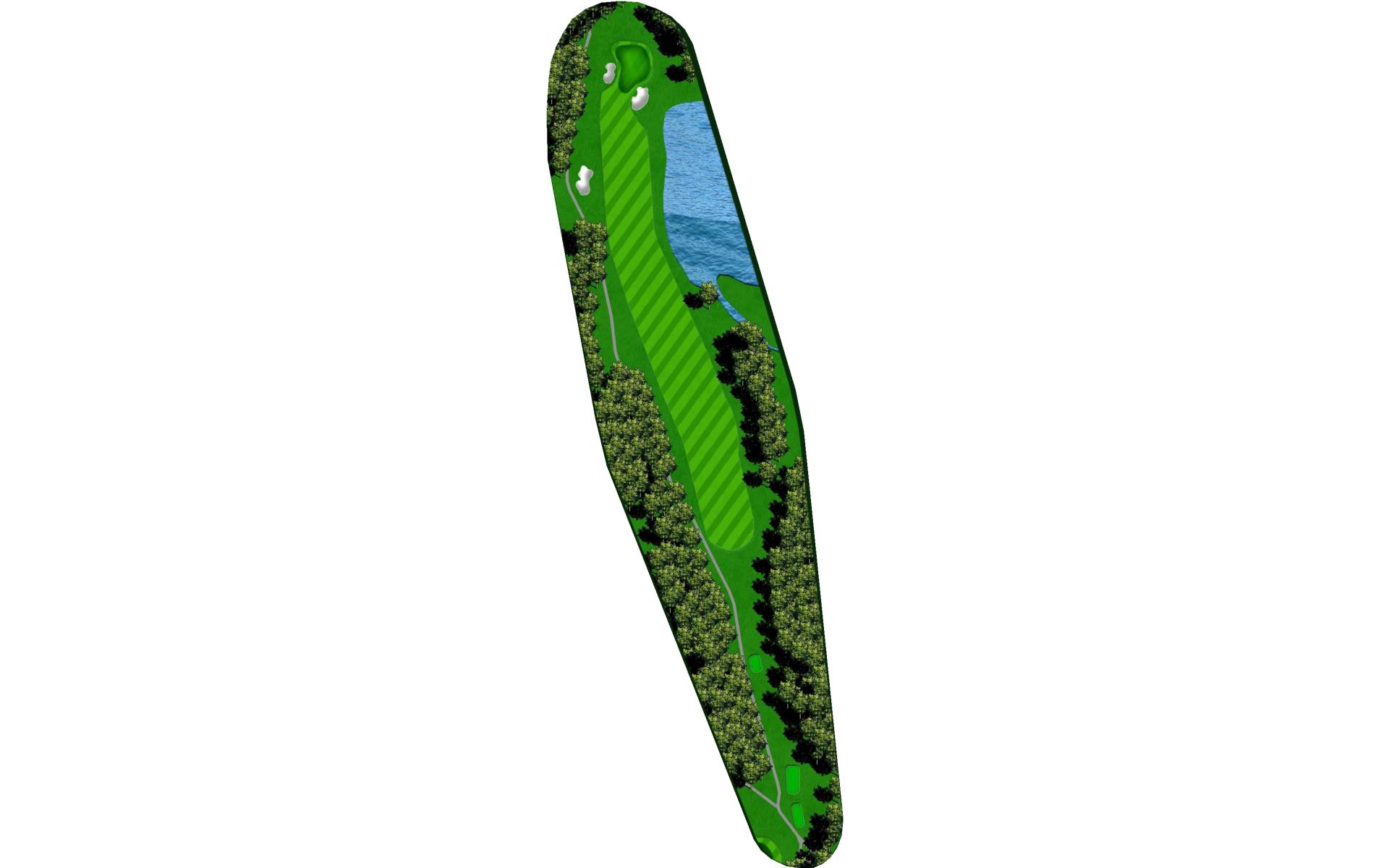 A tight par 4 with a penalty area at the end of the fairway. Long hitters will need a fairway wood of the tee.