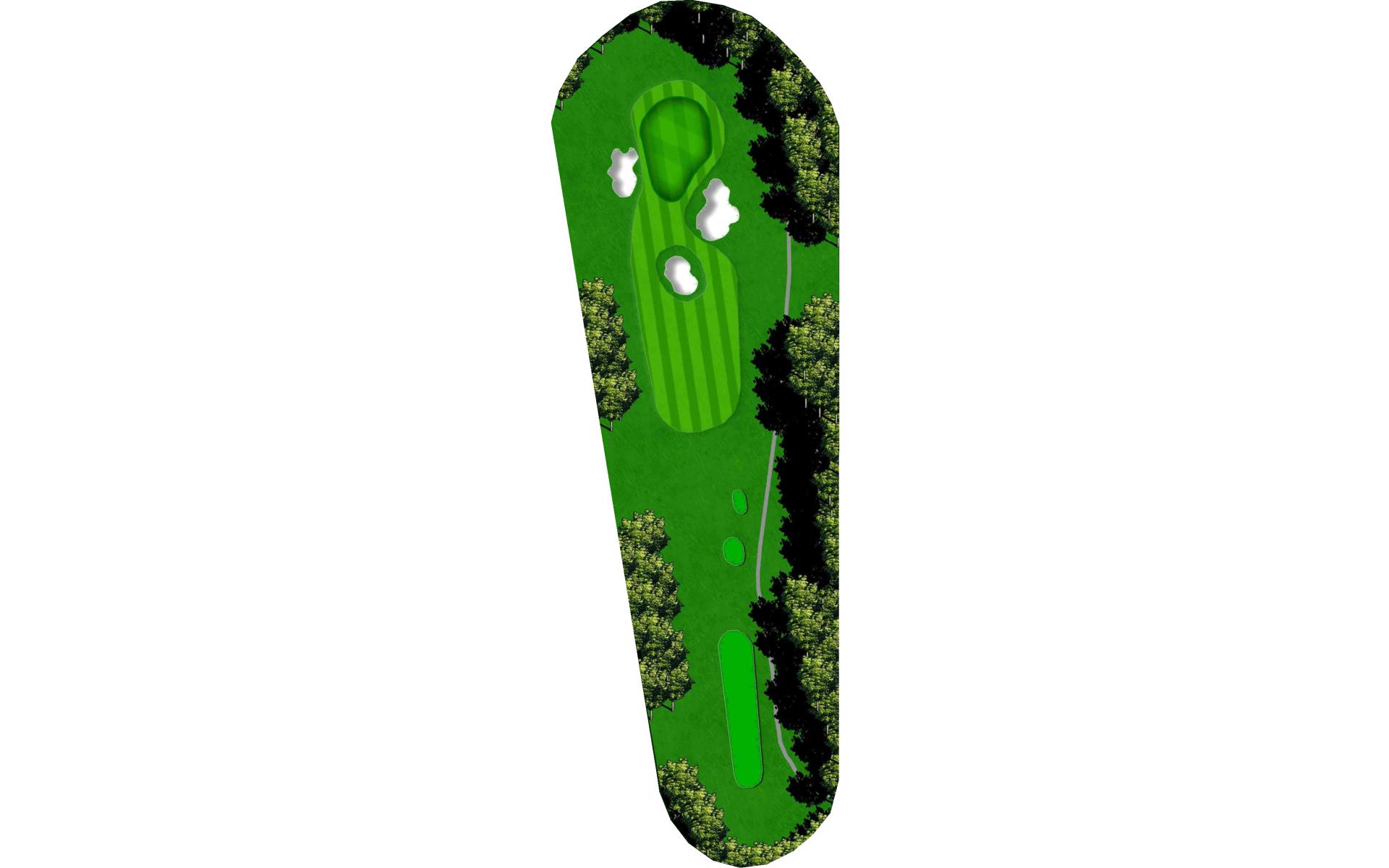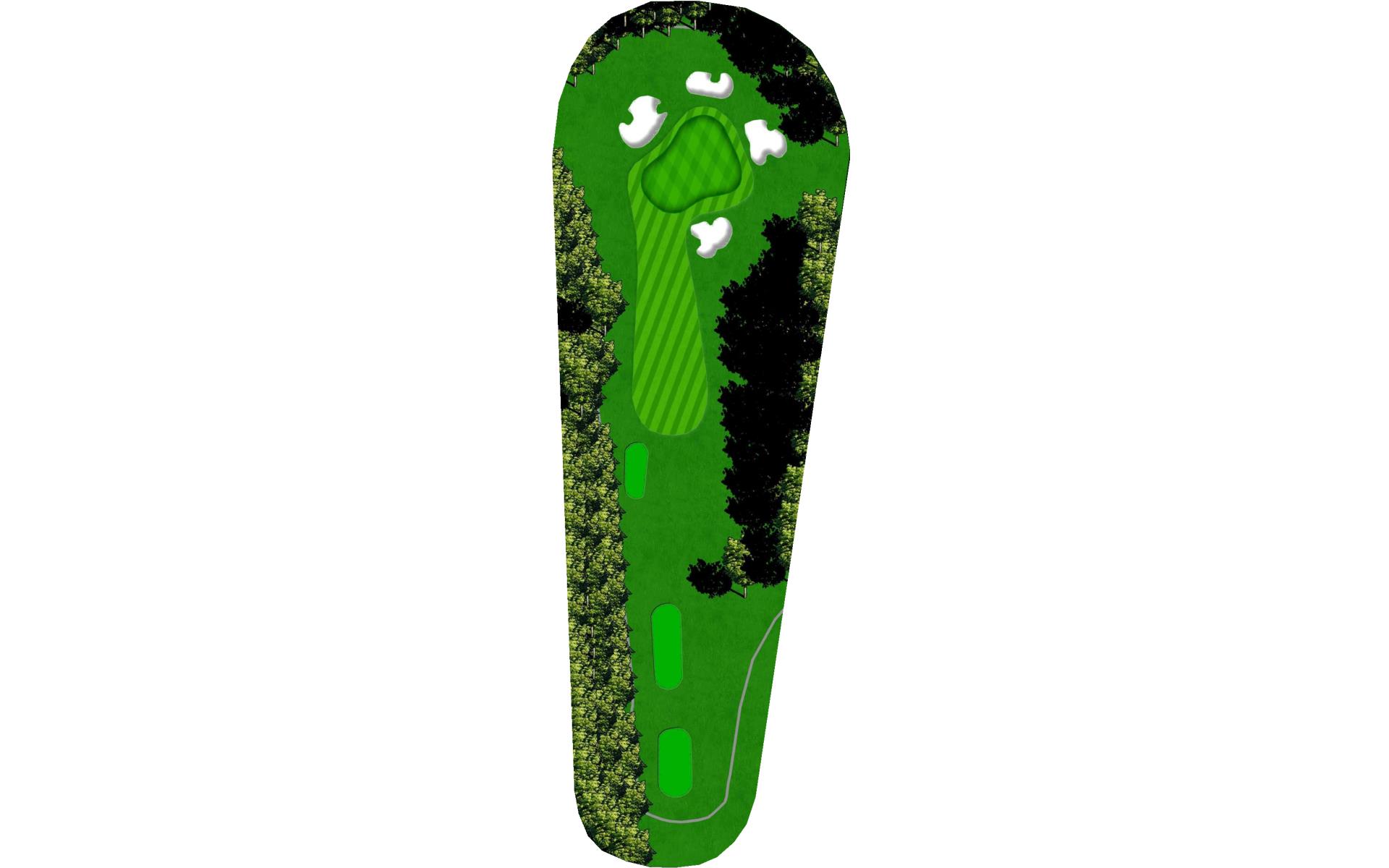 On this par 3 avoid the two front bunkers and the two back bunkers and a birdie putt will be the result.