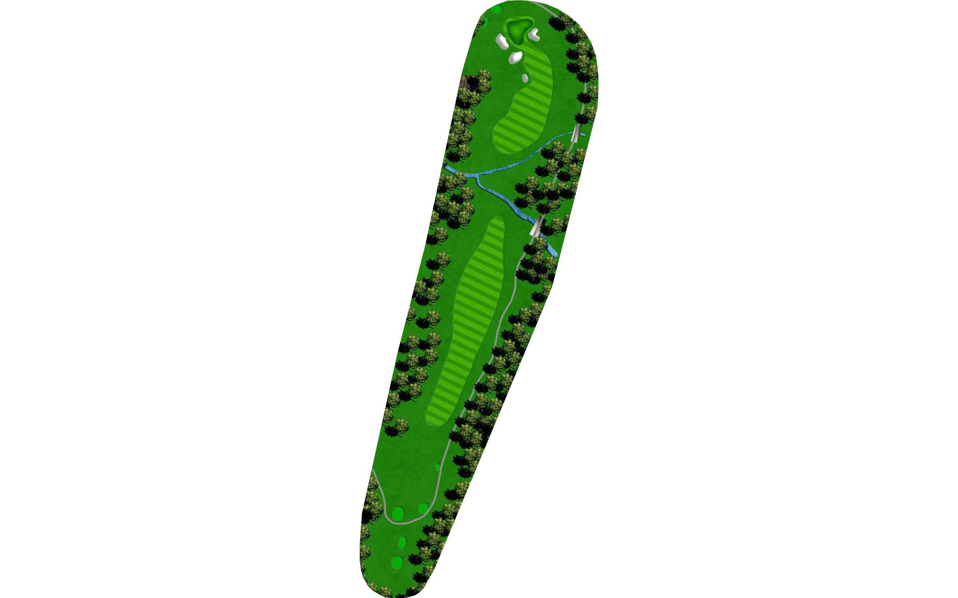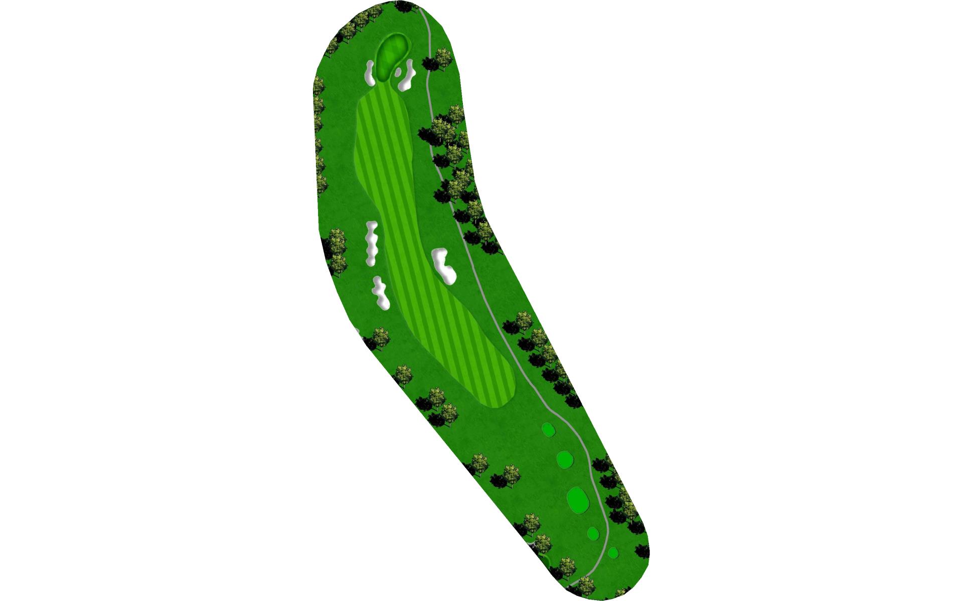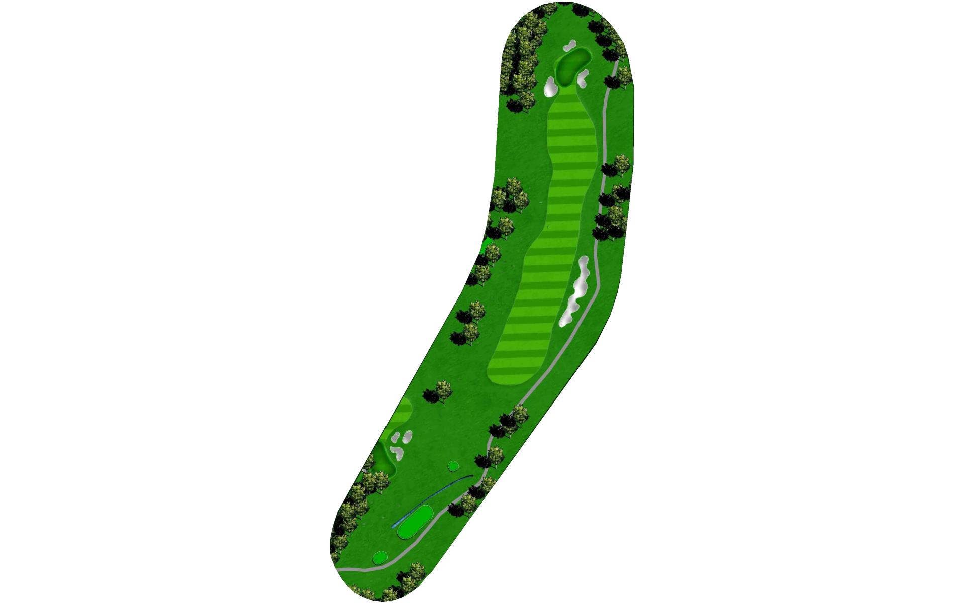 The home hole. Avoid the big tree on the right and the bunker on the left by ripping it down the middle. With a good drive you could have 190 to 150 yards for your approach. This is the biggest green on the course. Your approach is so important to this undulating green.