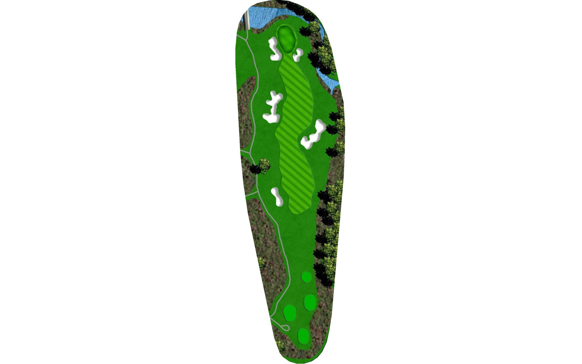 This par 3 is stubbornly guarded by a lake on the right. Bailing out left, away from the water, leaves you to face the anxiety of a difficult pitch toward the lake.