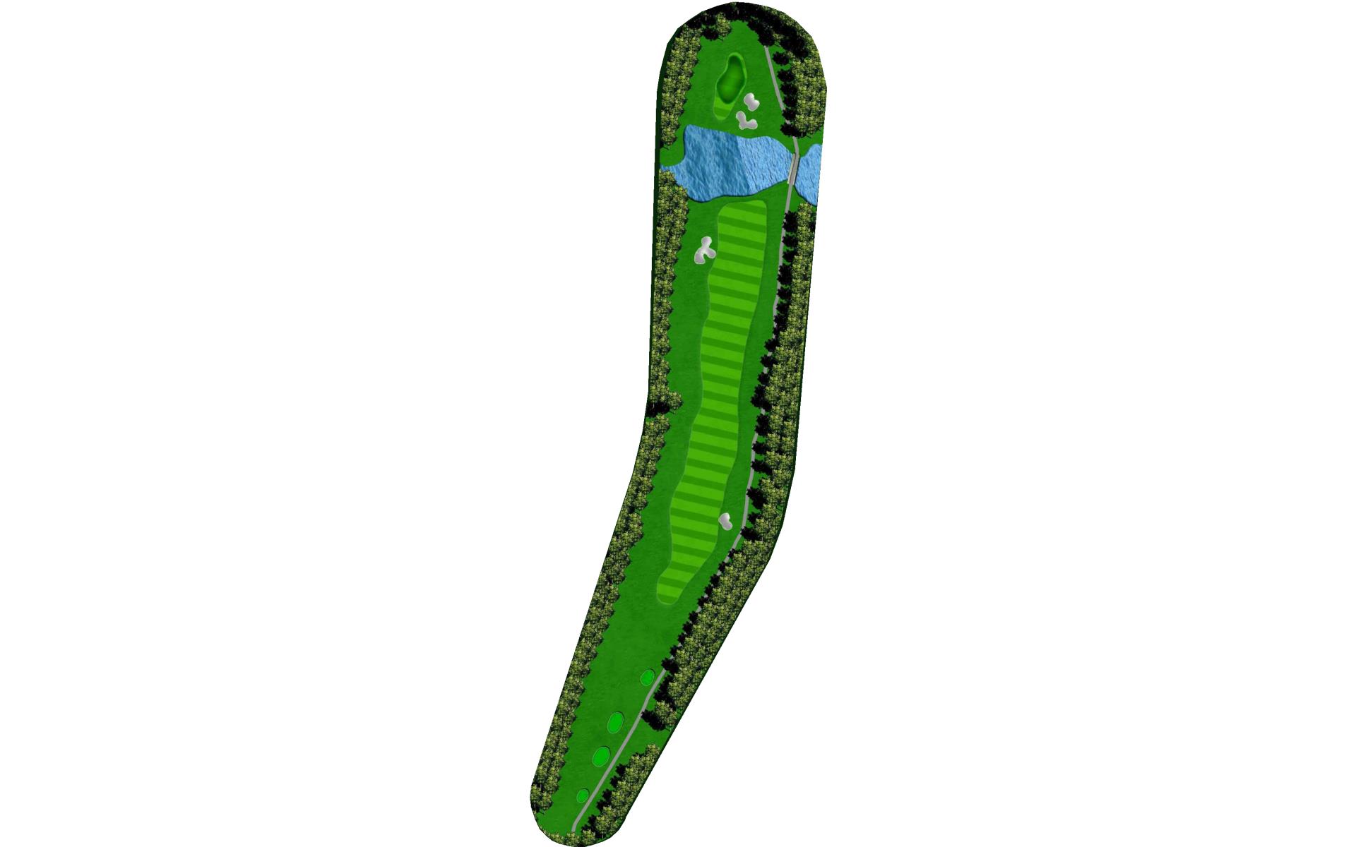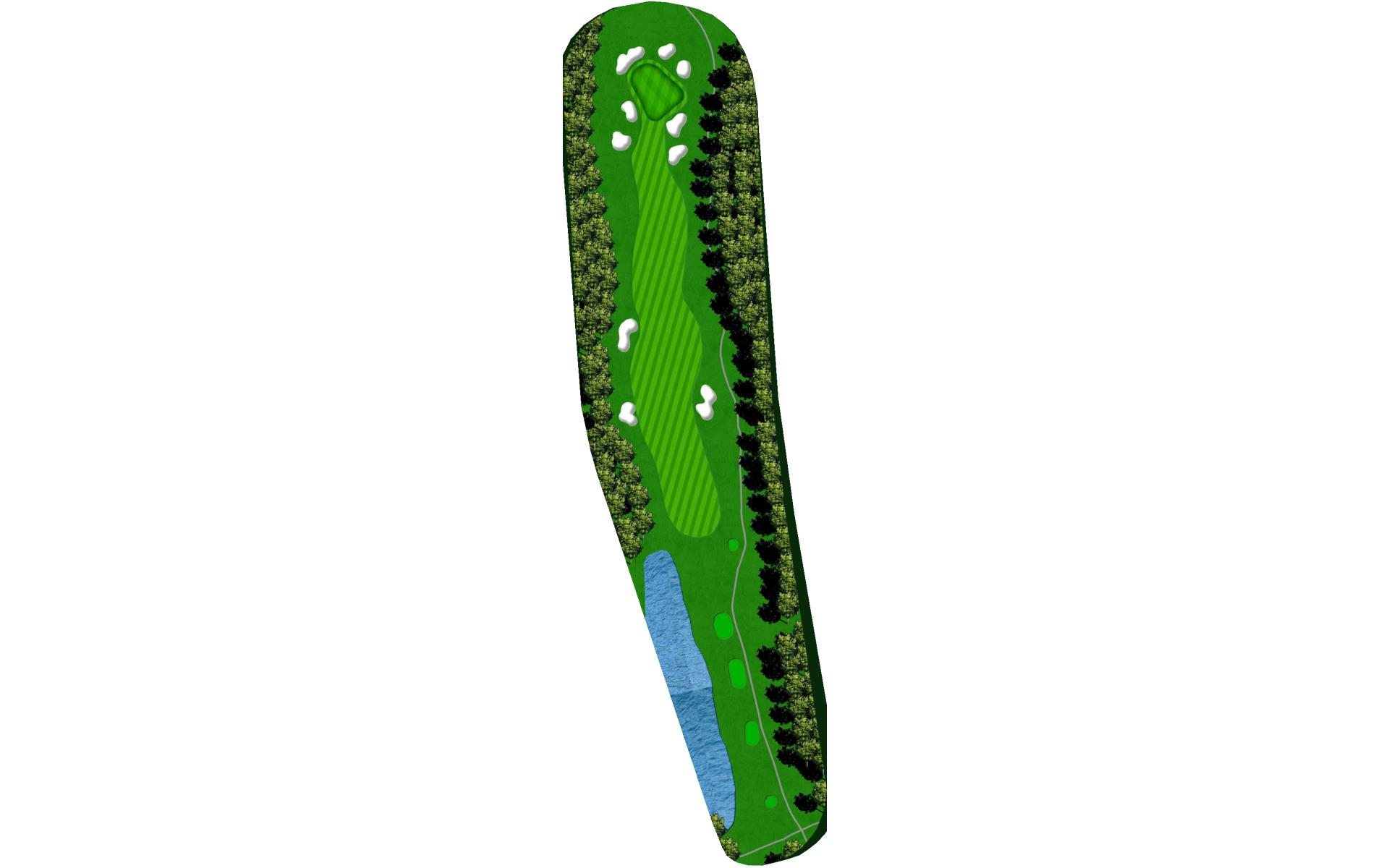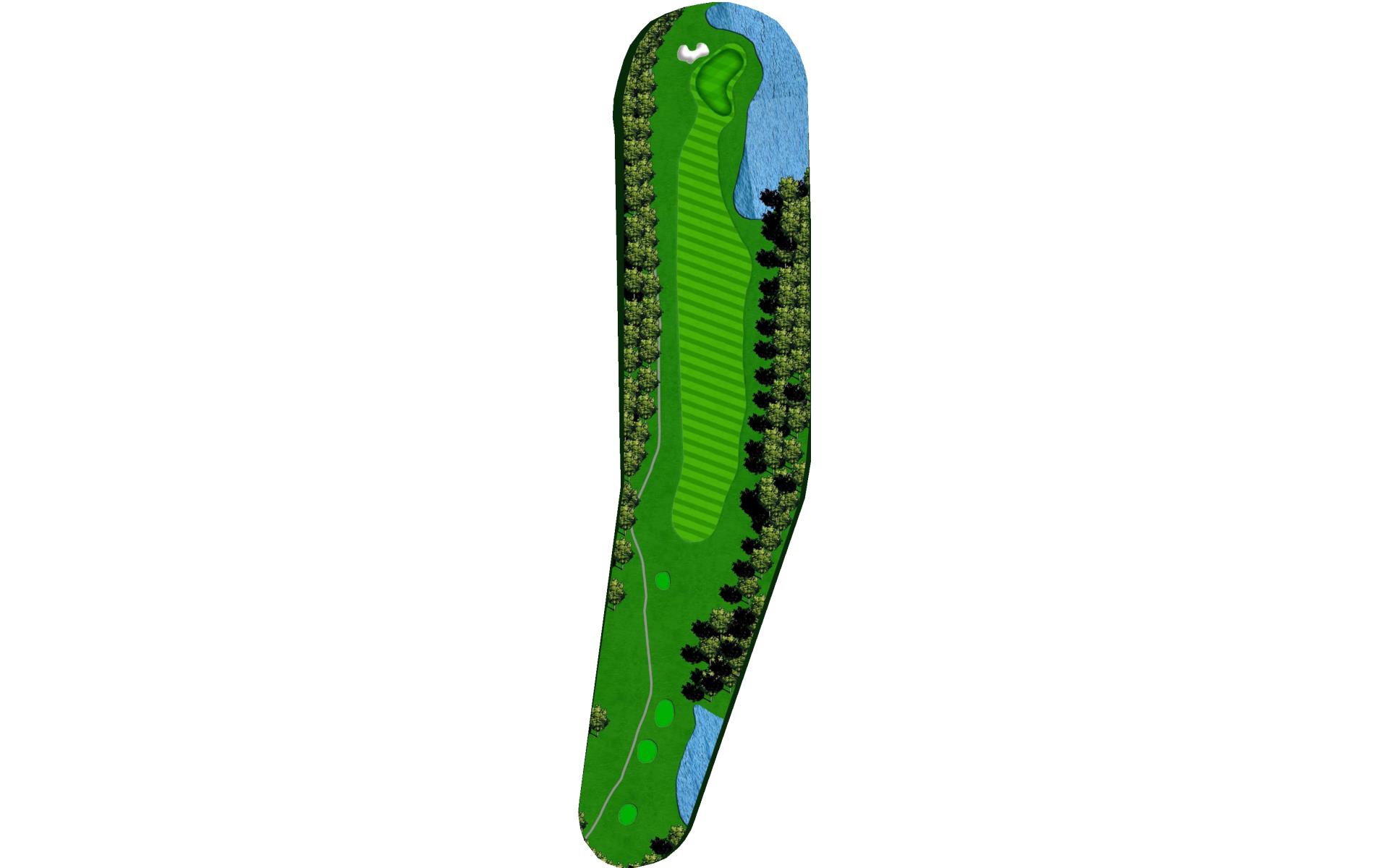 Favoring the right off the tee will help players avoid the water left and reach this par 5 in two. A lay-up is best played down the right to set up the best angle into the green. Anything long and left of this putting surface is not a good option.