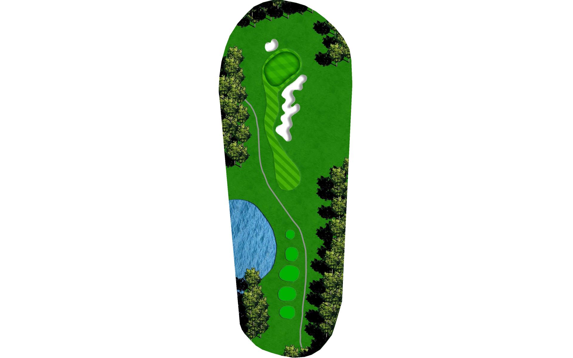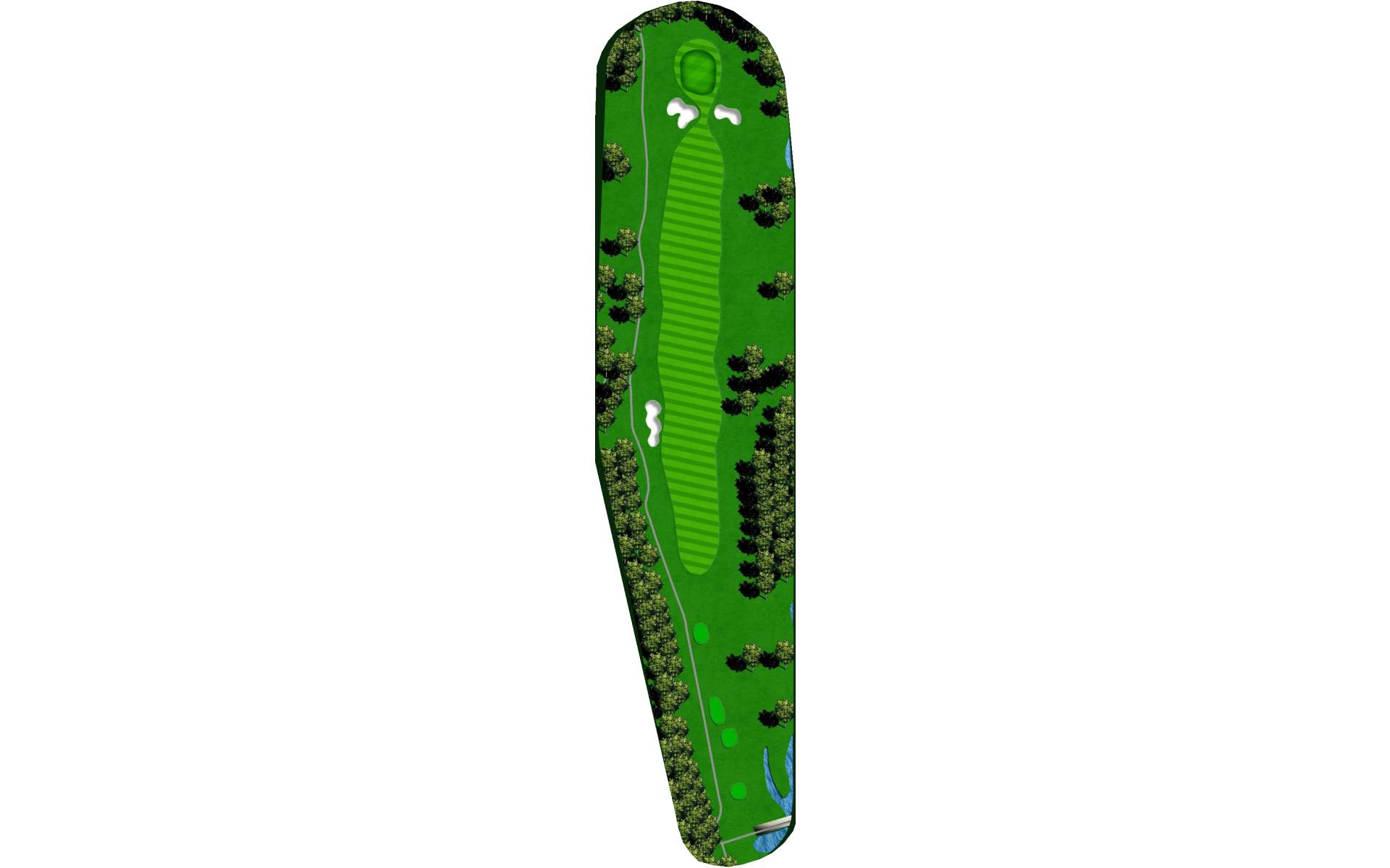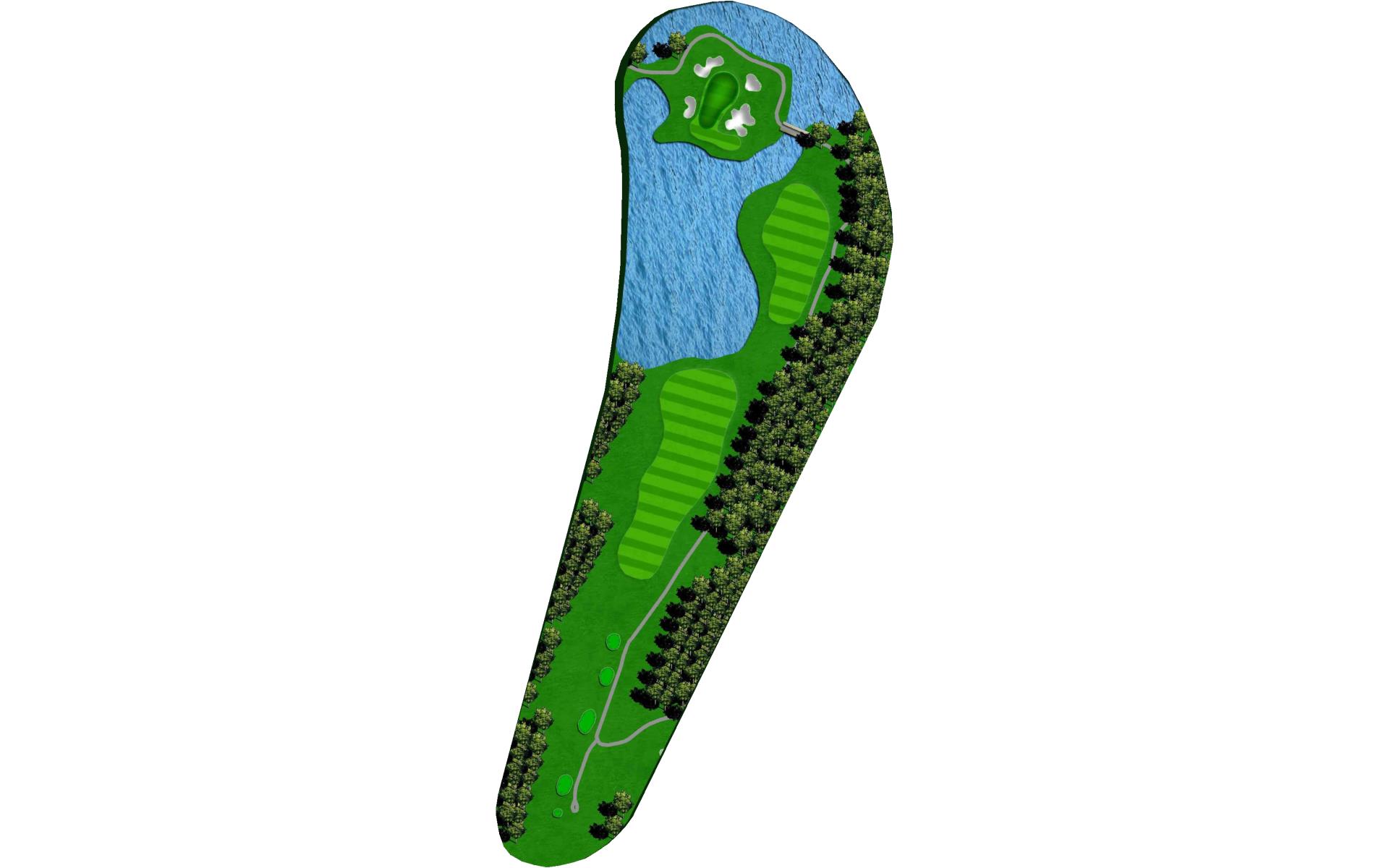Favoring the right off the tee will help players avoid the water left and reach this par 5 in two. A lay-up is best played down the right to set up the best angle into the green. Anything long and left of this putting surface is not a good option.
