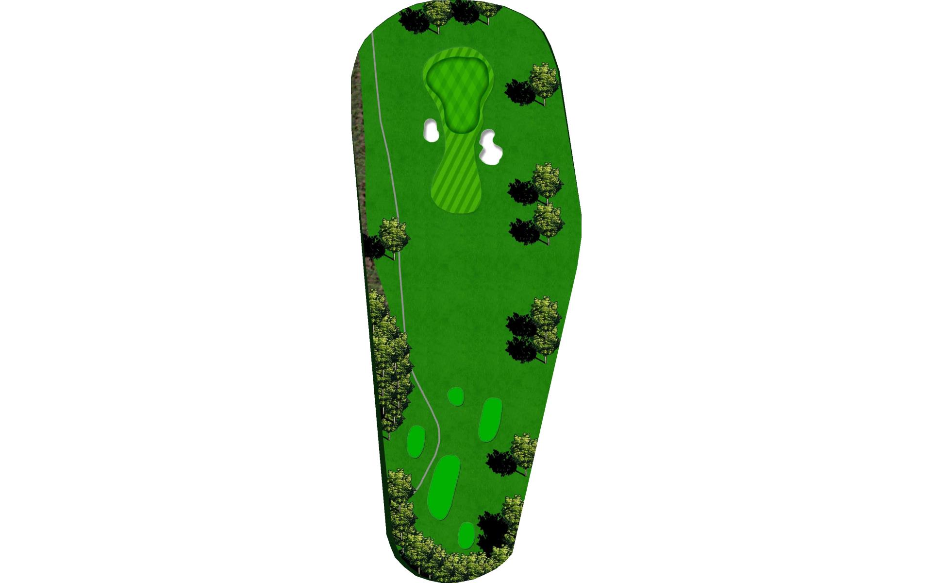 A good tee shot leaves two options; either lay up with a short iron or go for the green in two. Water left and over the right side of the green claims its share of errant shots. Once the ball is on the dance floor, the green slopes mainly back to front from the fairway angle.